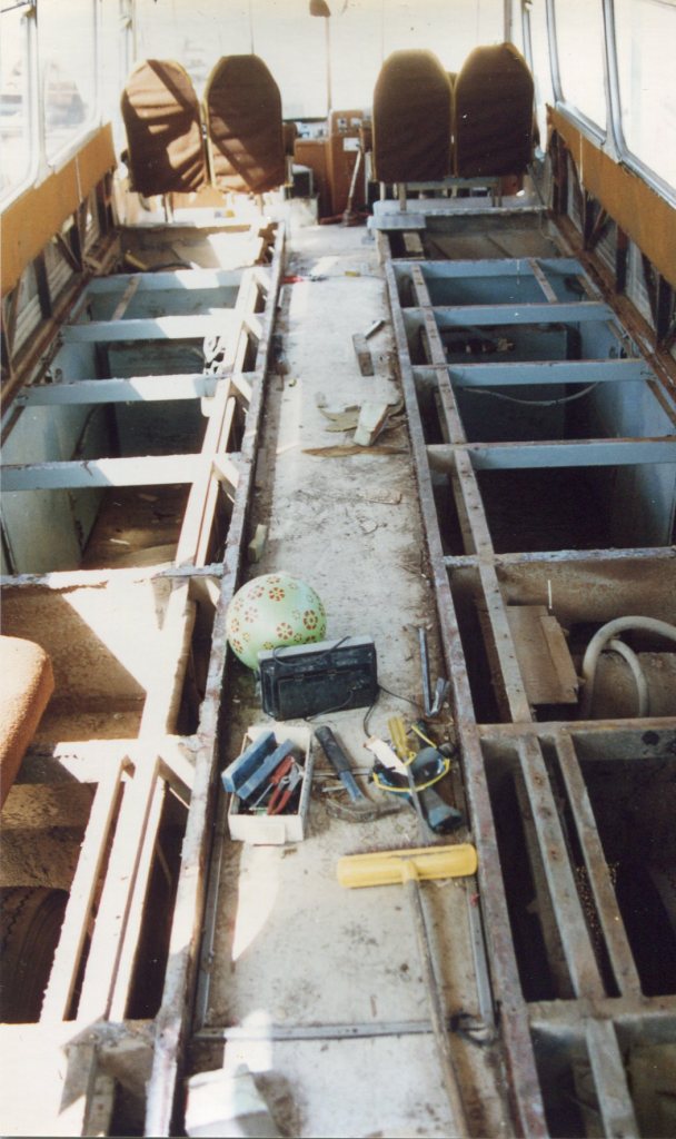 Converting a coach to a motorhome was not a fast undertaking. The reason it was so cheap was that the seats were old and crappy and not really suitable for charters. And the windows leaked. The leaking windows had also started rusting the frame but fortunately for us we didn’t care about the seats as we ripped them all out and we fixed all the rusty bits when we lowered and rebuilt the floor.