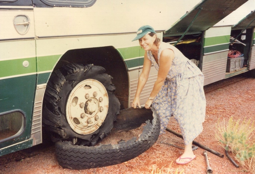 There was the odd day when things went wrong but either we sorted them out or some passing good samaritan in the middle of nowhere turned up and gave us a hand. I’ve just noticed after all these years that both of our main issues involved the front passenger side of the bus. The first one was an airbag and the second a flat tyre. A very flat tyre.