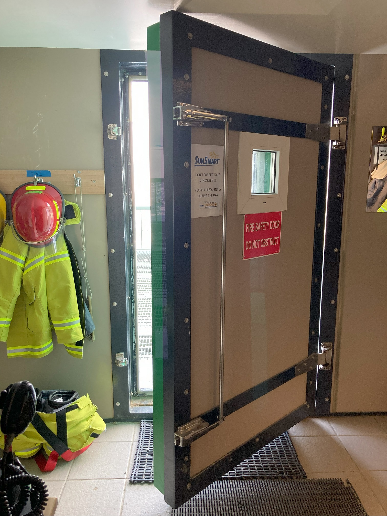 The biggest and most expensive doors would have to be the doors on the Emergency Vehicle Shelter (EVS). This building is where we keep our fire truck and ambulance which are both hagglands and also our emergency response quadbikes. These doors need to be able to open quickly and easily no matter the weather or how much ice or snow form against them. Technical and powerful they open and close at the push of a button. From an engineering perspective they are delightful.