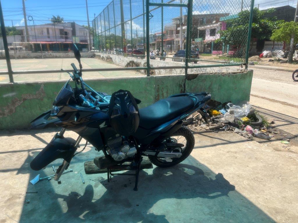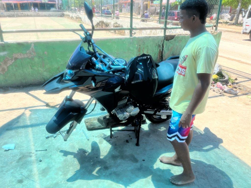 We, the onsite tyre group and onlookers, decided that Honda hadn’t put any air in the tyres and they looked fine when I picked it up because they were new and hard but after they warmed up and softened a bit and with some weight on them they became flat. Sounds feasible. I paid the tyre guy 5 bucks and also the young guy who took me there the same and also gave them another 5 bucks for a couple of beers as the Copa America 2024 game with Colombia was about to start shortly. They invited me to stay but I didn’t want to stay and drink beer, I’d already had a big day and I just wanted to get my bike home safely and destress.