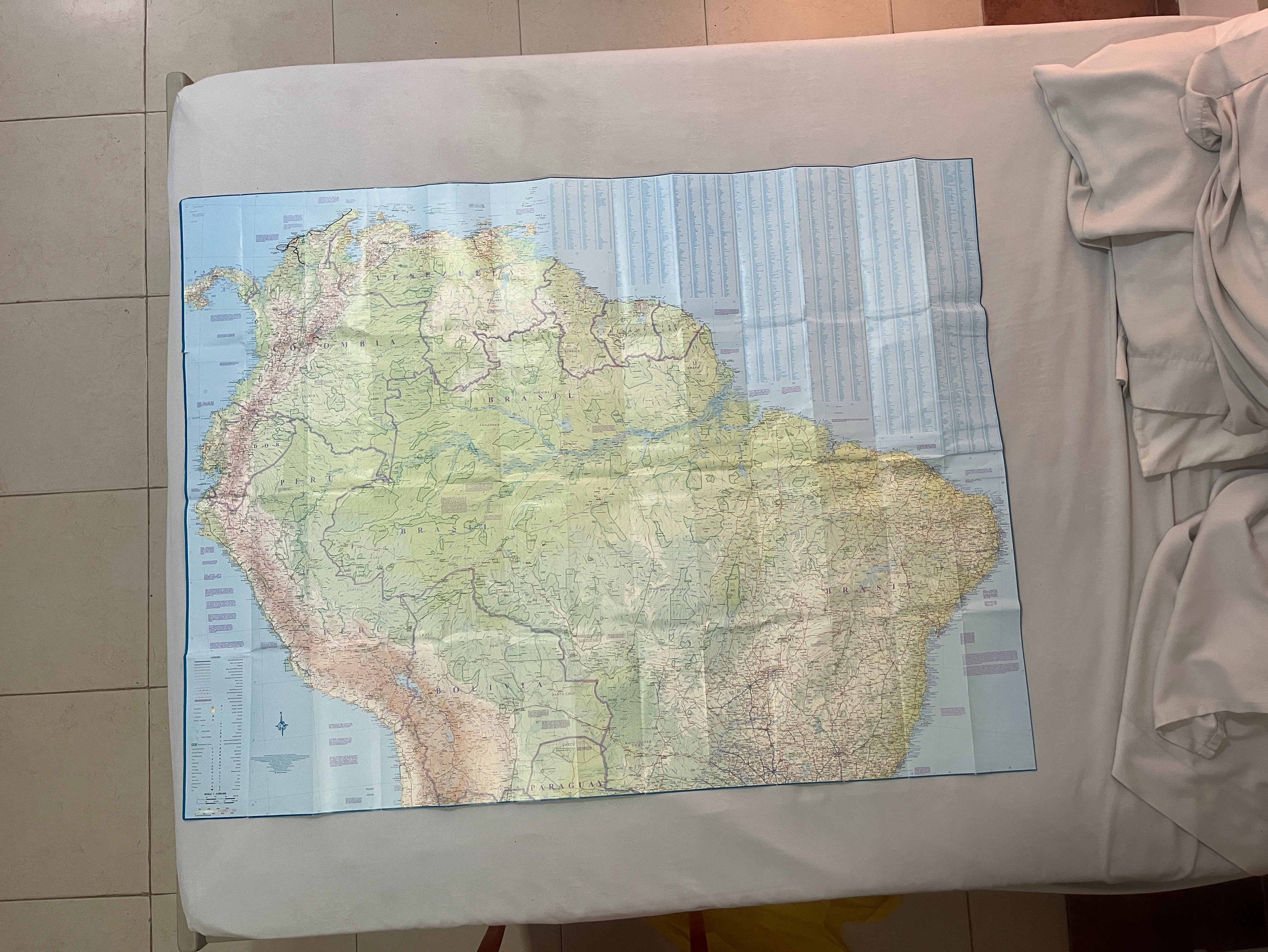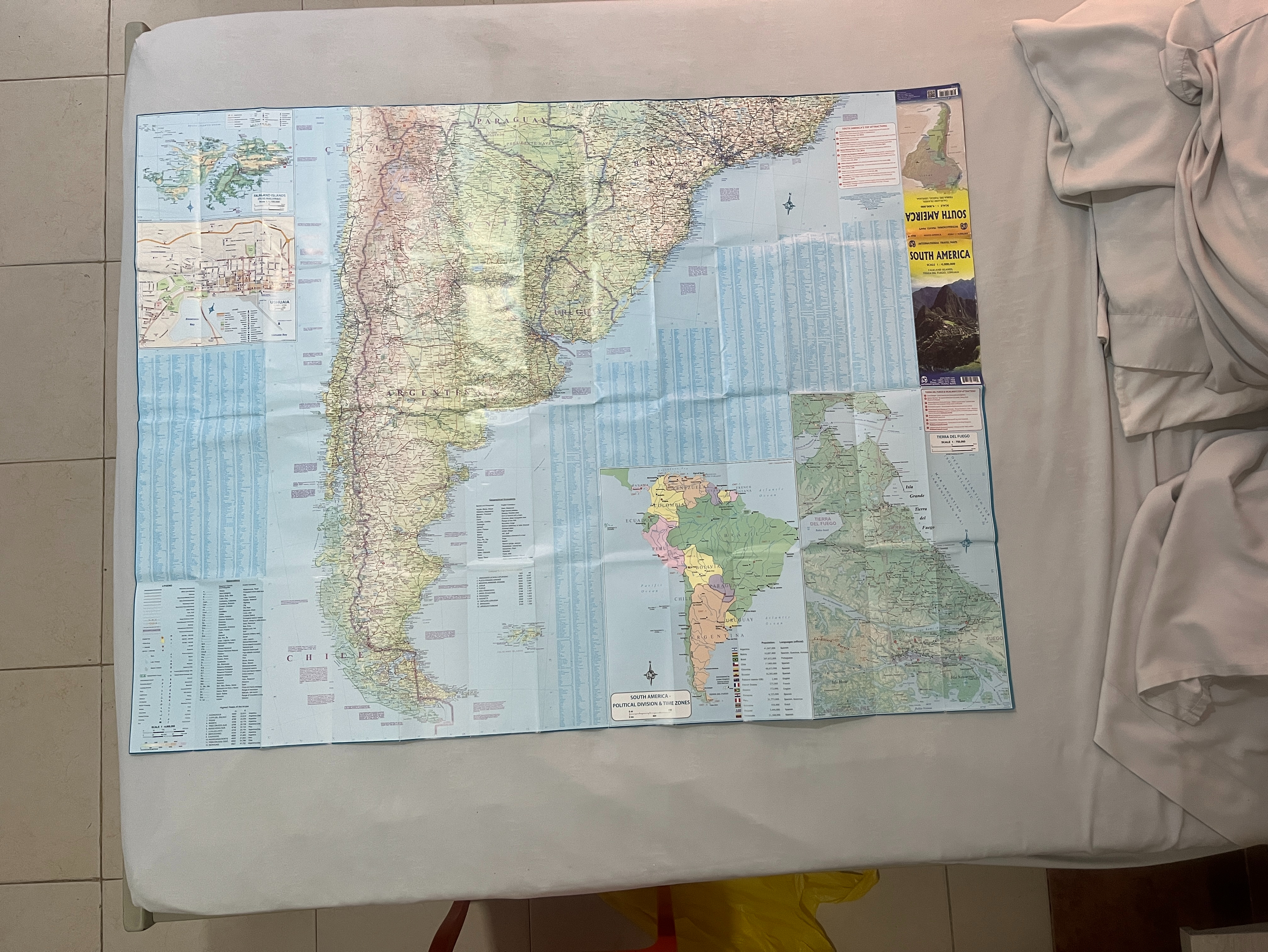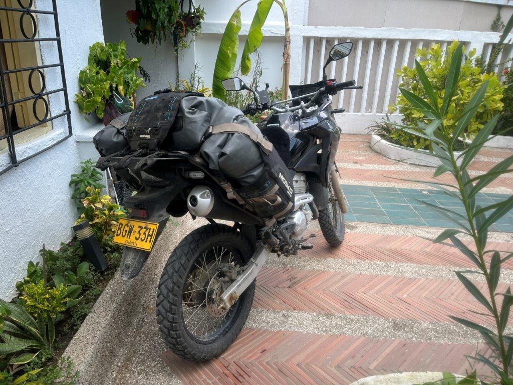 Back to me now and not doing it tough without aircon. I took a couple of photos of a map that I had brought with me. I put them on my double bed for scale and marked out where I had been already. It was nowhere. It’s a huge continent and I have so far to go. I needed to get going. So next morning I did. By 10:00am I was on the road and on my way to Medellin. Google says it was 652kms and 12.5 hours of travel time. I decided to break it down so that I had two overnight stops. The adventure was beginning.