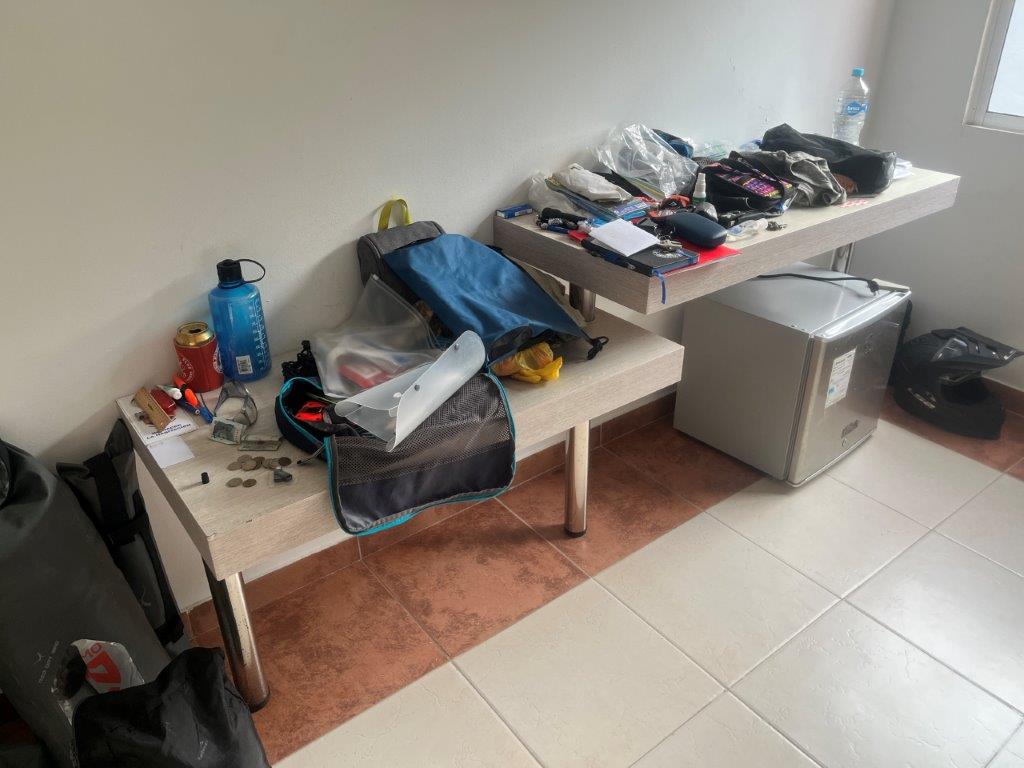 It was nice to be able to spread my gear out and work in the cool. The bag on the right is all of my clothes for the year (excluding my motorbike safety clothing and what I’m wearing) I managed to minimalise enough stuff so that I could fit it all in my Mosko Moto luggage panniers. The left-over gear I had decided to send to a friend in Bogota. Fortunately, when I googled DHL, there was a depot only a five minute walk from my hotel. Most of the stuff I was going to send was the bags that I had used to get to Cartagena with all the new trip gear I’d bought in the States and which I will need again when I fly home.