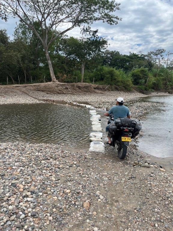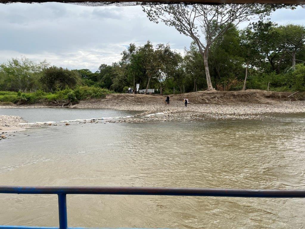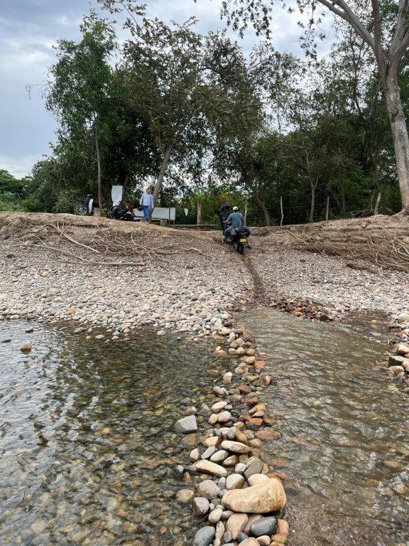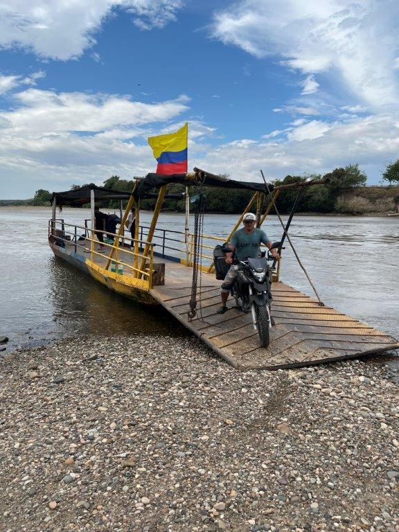 At the end of the circuit I had heard about a small ferry that crosses the river and saves you having to drive back the way I came or having to travel further south to another town with a bridge. I thought the ferry sounded cool. I followed the signs and drove down a nice concrete ramp and onto the ferry which looked like it could fit about two cars. There was another bike already on it and a guy turned up with some boxes and then we crossed the Magdalena. See what I did there? As we crossed I couldn’t work out where the other side was. There were a few people standing on a bank but no ramp or road. Surely not. Surely yes.