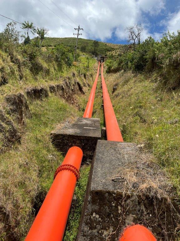 We chatted a bit and then took off and he then disappeared into the distance. I stopped to take a photo of what I would assume to be a hydro system. I’m sure there are heaps of them around Colombia. When I arrived at the gravel section of road, I also discovered it was in terrible condition and heading up into the mountains. The mist became light rain and the visibility disappeared. All I could do was watch for potholes and hope that anything coming the other way had it’s lights on. It was a slow scary ride, with tight bends, small bridges (probably over the Magdalena), and washouts. And lots of loose rocks. I stopped early and took a couple of pics but after that I was too focused on surviving the road and avoiding the traffic which was obviously a lot more used to the road and its condition.