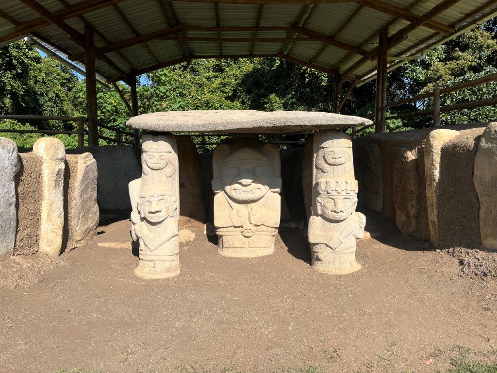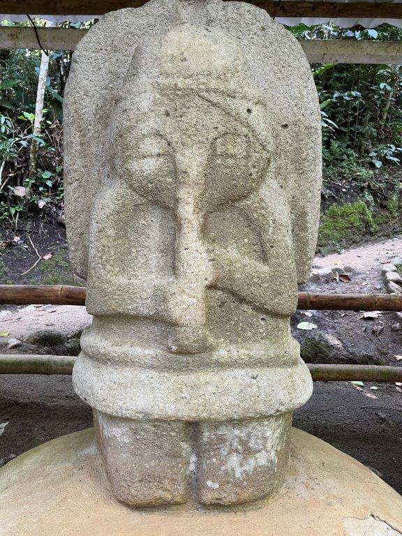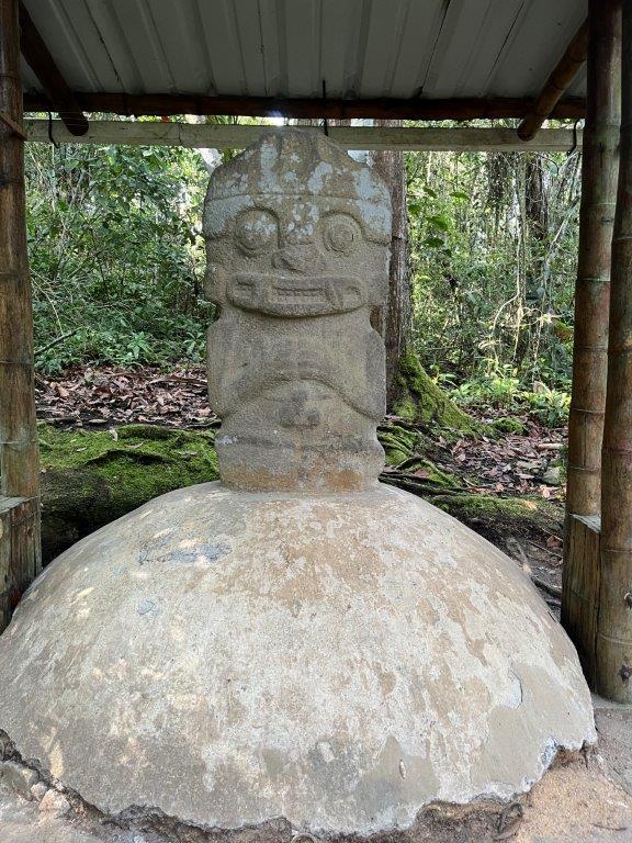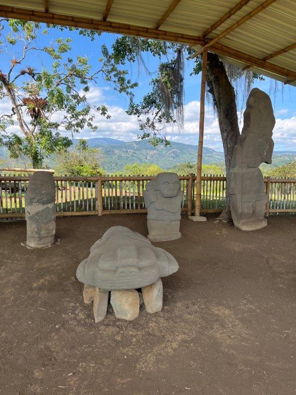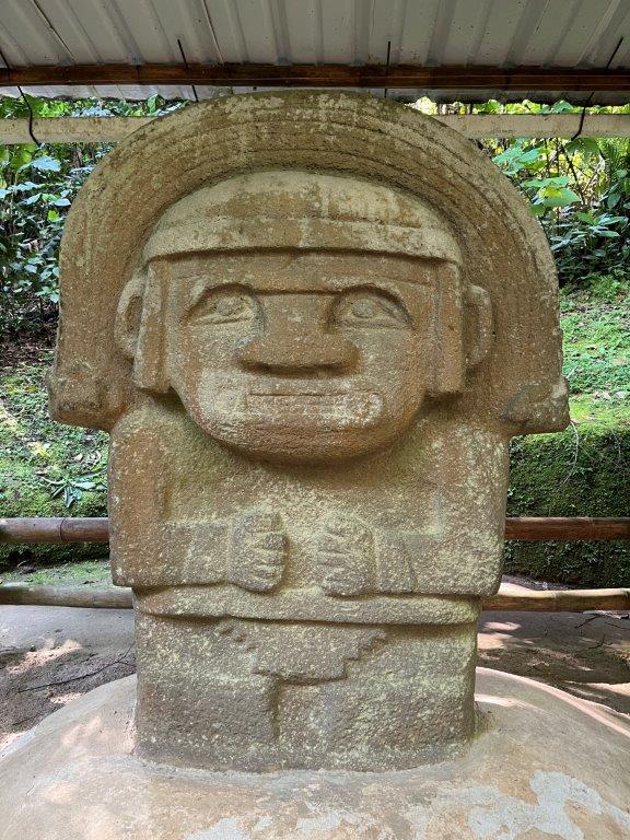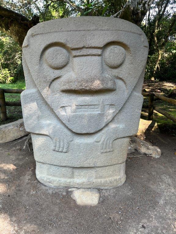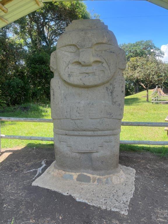 Next morning I was up early and headed off without my gear or bike clothing for a short 5km ride to the San Agustin Archaeological Park with no great expectations. A quick wander around and back out again. Wrong. It was actually pretty good. Sometimes my method of not researching something beforehand pays off. The park is nicely set out and I was the first one there. You start by wandering through some buildings with informative signs and glass cases full of old stuff and some nice old looking statues. We’ve all heard about the Inca’s and the Aztecs and the Mayans but the stuff here is thousands of years before those guys. More like about the same time as the construction boom in Egypt.