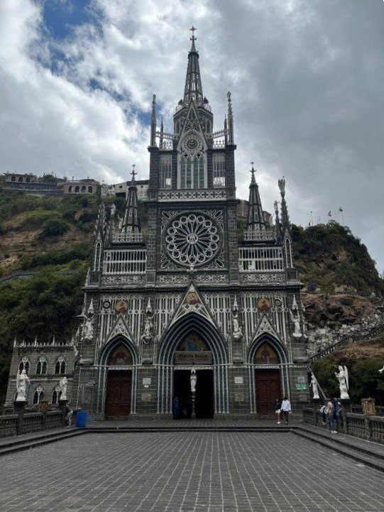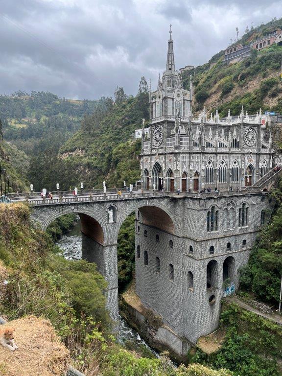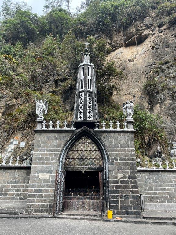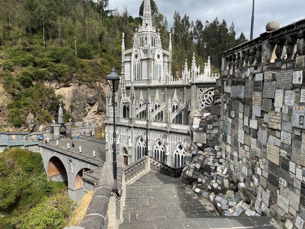 Not any church but the Sanctuary of Our Lady of the Rosary of Las Lajas which is a well known church about 15 minutes away. The site had been a pilgrimage destination since the 16th century. At some stage some young deaf mute child saw an image of the Virgin of Rosa on a rockface and then suddenly she was able to speak. Over the centuries a church and then a series of renovations created quite an impressive piece of architecture in a difficult location in a canyon. It was very popular and even in the early morning there were lots of people walking down the long path of steps to visit the church.