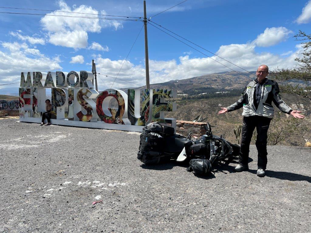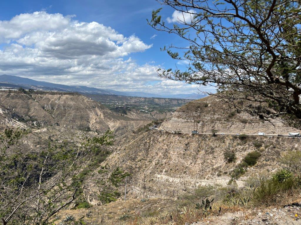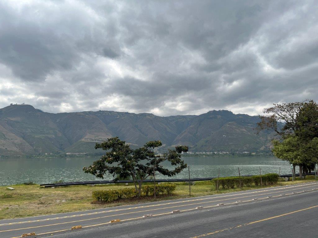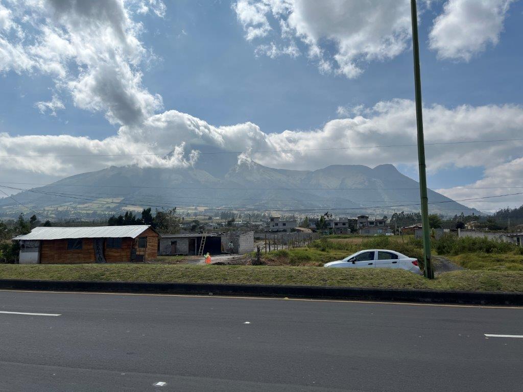 Next morning I was up early and took advantage of the nice german bread and had some eggs on toast. I’d finished breakfast and was ready to leave when the others rocked up. I said my goodbyes and we agreed to catch up in Quito. The capital of Ecuador. It was only 126kms and a couple of hours away.  The scenery was great. The roads wider and smother than in Colombia and the thing I noticed most was the lack of motorbikes. This caused a bit of a problem as I needed to be able to follow local bikes so I could learn which rules were fine to break and which ones weren’t. There were still the strong winds that I’d hoped to leave behind in Colombia. And also the deep gutters on the sides of the roads which make it difficult to pull over to take photos and scary when you have to move to the edge. especially when it’s windy.
