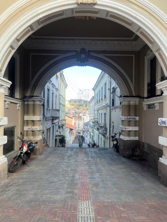 I initially stayed in the Hostal Atlantis in Quito, the capital, that was only $18AUD and reasonable. It just seemed a bit glum, not sure why. It was also a bit of a challenge to ride my bike up over the gutter and in through the front door and then down a couple of steps into the rear courtyard but at least it was safe parking. The room was nice as was the person who checked me in. I think I was the only guest and there were a couple of long stay people.