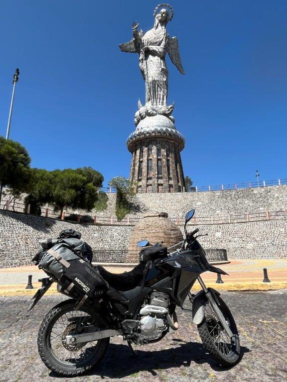 It all seems pretty chill here now and the people are really nice. Guayaquil is apparently still a bit dangerous but I haven’t got there yet to give you a report. On my last morning I left the hotel loaded up and ready to head to somewhere. Probably the coast. For some warmth. Not that the weather was that bad in Quito. I had wanted to visit the Panecillo which is a small hill with a large statue of the Virgin of Quito but had been warned by several people not to walk up there and for once I heeded the warning and instead rode up there on my way out of town. Not quite the Statue of Liberty but worth a look. From the top I could see Cotopaxi in the distance.