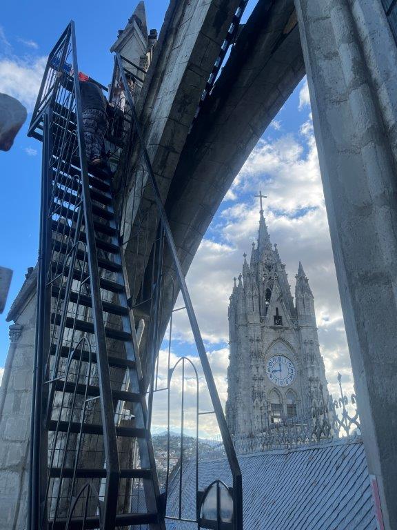 Regardless. It’s a great building and I was happy to pay the $9AUD to explore it. It’s huge. Often compared to Notre Dame in Paris. It is built in the same style but with some great local changes. My favourite is that the normally grotesque gargoyles are now Ecuadorian animals like the tortoise, iguanas or condors. The best part is that once you pay the money you get to visit most parts of the building, especially the three towers. There is a lift in one of the towers so that they can get money off old and disabled people as well. Perhaps I’m being a bit harsh here.