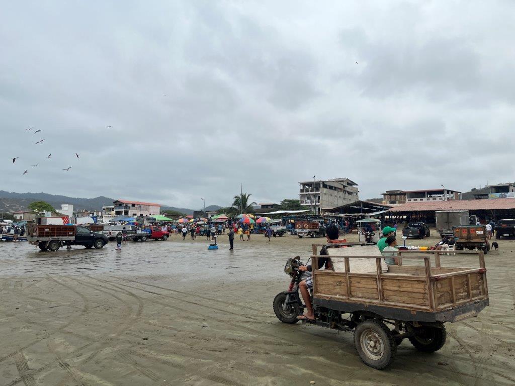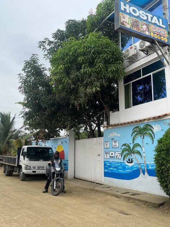 I hadn’t booked anywhere in Pedernales but went straight to a place I had been looking at on booking dot com. Called the Hostal Sarai. It was $25.00AUD for a very small room but clean and safe bike parking. The town was a reasonable size but seemed to be mainly set about 6 blocks back from the ocean. Those six blocks seemed slightly dodgy but town seemed fine. The place was full of yellow TukTuks. Actually, I don’t know what they are called in Spanish.