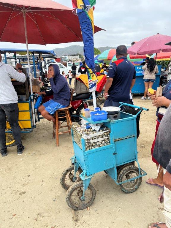 The road from the Andes to the coast was pretty nice. Uneventful but through some lovely roads winding down to sea level. I passed quite a few cactus looking crops which I believe are dragon fruit. There were a lot of them for sale along the way. I stopped off and fuelled up and found that I had done 340kms on a tank and still had two bars left. I’m guessing it was because it was downhill by a couple of kilometres. Normally after 300kms I have two bars left. It cost me $9.00AUD to fill up. Ecuador is a bit cheaper than Colombia, but I think the fuel is 85% compared to Colombia’s 89%. Ecuador also offers a 95% fuel, but I never see anybody use it. I heard it is imported fuel and it costs 20% more. The bike seems to run fine with the lower octane fuel.
