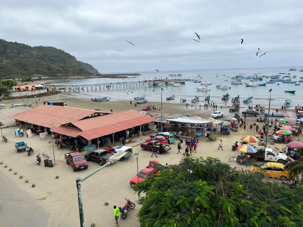 Nice enough room but no external window. Hotels in my price range often lack an external window but have one that opens onto the passageway. This place had a nice rooftop terrace although nowhere near as flash as Quito. But ocean front. Turns out it was opposite the fish market but wasn’t too smelly. There was an older German guy in the room next to me. He had been there for 2.5 years. Good source of information. I had a nice fish dinner and an early night after about 6 hours on the bike.