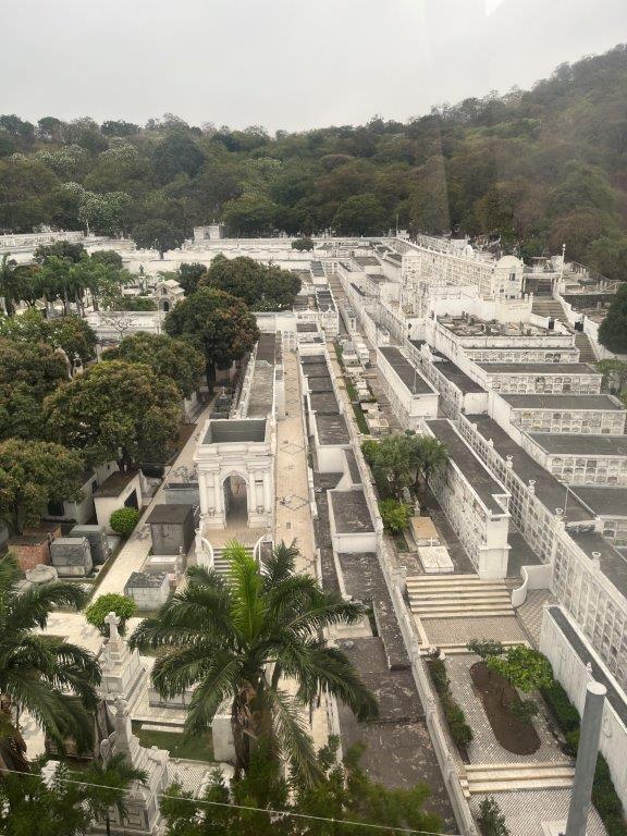 I parked up and unloaded and then went walking before it got dark and was unsafe. The hotel was near a cable car and it was $2 for the plastic card and $2 to charge it for a round trip. I had no idea where that was but it sounded fun. I climbed aboard. Turned out it was about 20 mins each way and travelled around a bit of the city and then across a big expanse of water. I don’t think it was a tourist attraction but local public transport. It was great. I had a high view over a huge cemetery which I rode around twice by mistake when I left town. On the trip back I jumped off about 20 mins from my hotel and walked along the busy Malecon next to the water. It was so busy with families and music and street theatre, it seemed very nice. I found a place to eat some Turkish food and a beer and then made it back to the hotel as it got dark.
