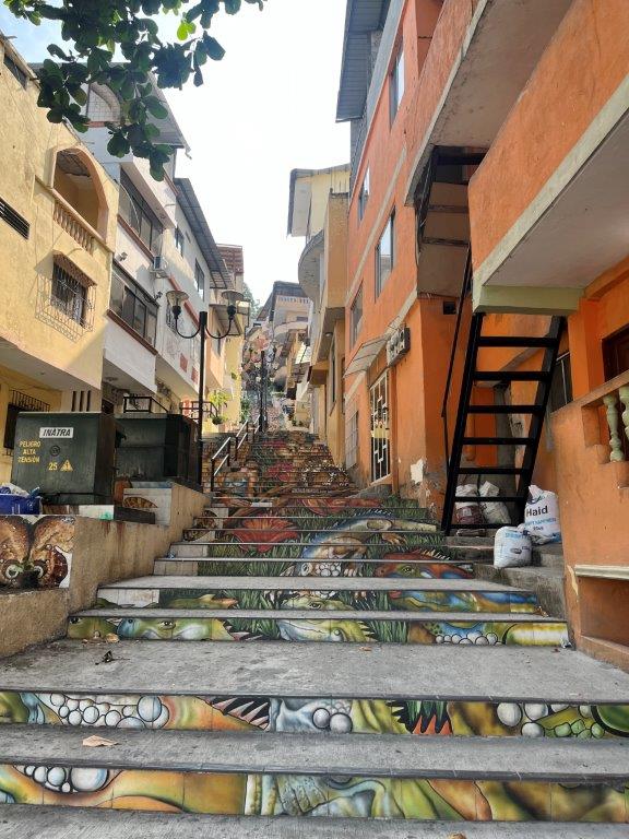 Next morning I got up early and went to a lighthouse I’d seen from the cable car the day before. About an eight hundred step climb but I forget to photograph the top step but I got a photo of the bottom one and I wasn’t walking back up. Only me. Lovely views over the city. Guayaquil turned out to be quiet a nice city with a lot to do. I found a nice breakfast spot. And got back in time to check out at 11:00am and head to Cuenca. Which I had heard is a lovely city and I thought quite big.