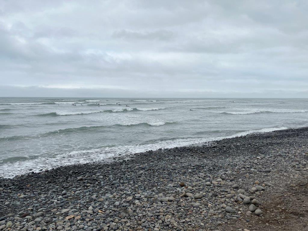 It does have a main highway and a pedestrian walkway along the ocean edge so I did get to share a nice walk with a few thousand cars. It is mainly smooth rocks and pebbles on the beach and not walkable. Apparently, surfing is pretty big here and there were a lot of surfers out in what looked like pretty cold water. Not that I surf but the waves did look good. There were only a couple of spots where you could get from the ocean up onto the top where the city was. I walked them both. Great exercise. There is a nice walk along the top as well with great views through the mystic fog. And a few interesting statues.
