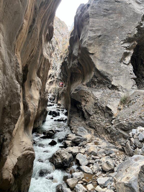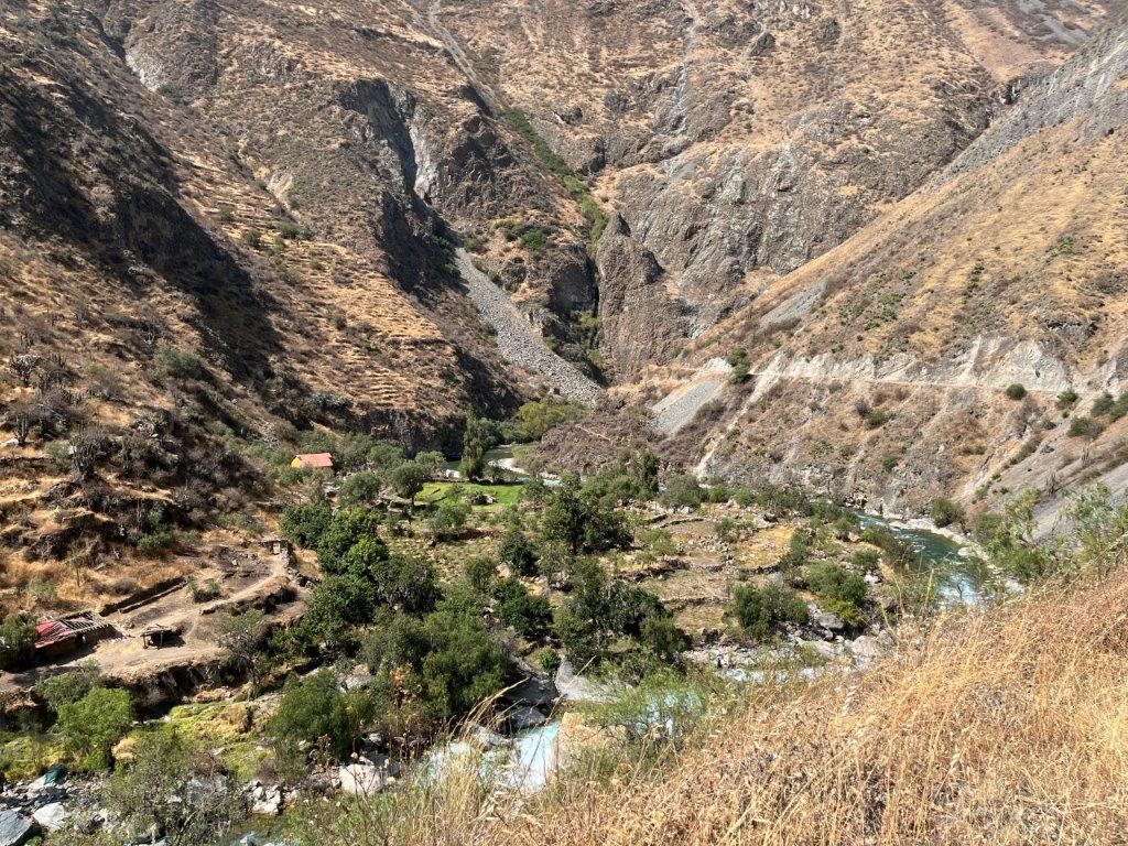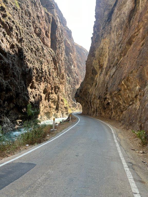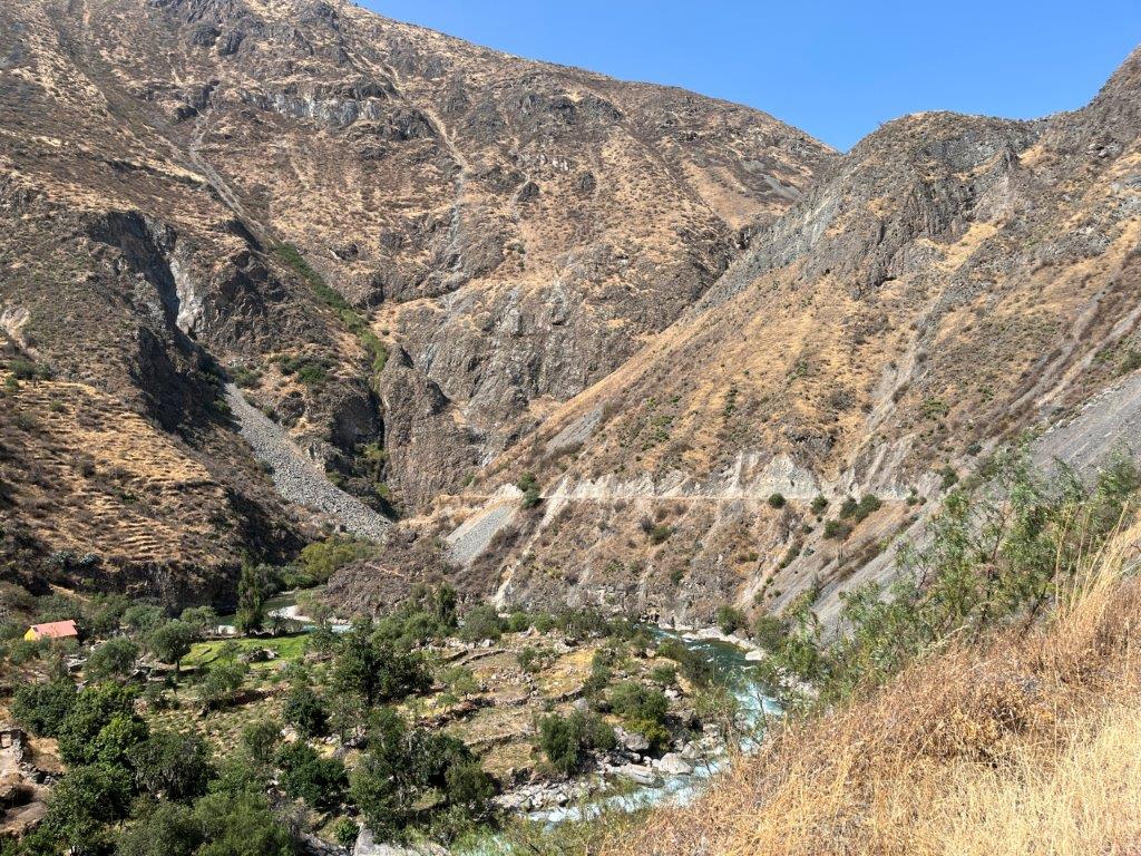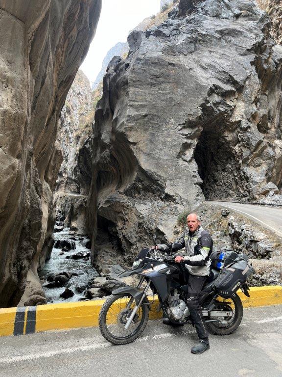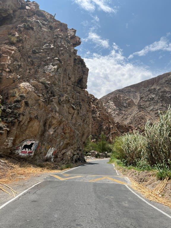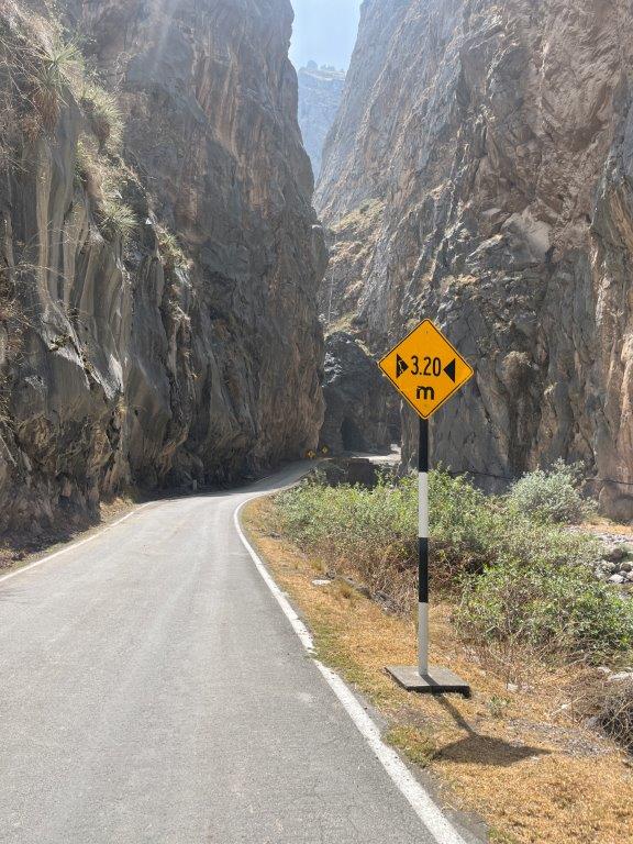 I left around 8:00 next morning and there wasn’t much traffic on the road which was fortunate as in some places it was only 3.2m wide. It was such a nice ride. I stopped heaps of times just to look or to try and photograph it. After 2 hours of riding, I finally arrived at the canyon. In some ways it was an anticlimax as it was only slightly better than the entire ride up to it. I checked out the little town nearby and then turned back to the canyon to take some pics. Three guys on bikes had turned up there in the meantime. They were from Brazil and were on bikes they had rented in Lima. We had a nice chat and they took a couple of photos for me which was nice. Then it was just me and the Canyon. And the odd truck. I had a little bag of trail mix and some water and then decided to drop my elevation by 3600 metres. I could have almost rolled the whole way down.
