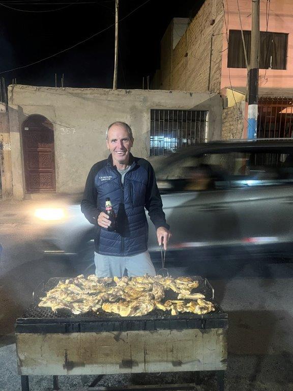A highlight of Pisco though was when I wandered down the road to find some street food. I found a few stalls on a corner cooking stuff on sticks over the coals. Looked perfect until I put my glasses on. Another childhood memory. Everything was offal. No thankyou. That wasn’t the highlight though. I headed in the opposite direction and saw just one charcoal BBQ on the street in front of a house. I put my glasses on and it was chicken. It didn’t quite look like a food place but also didn’t look like someone’s house.