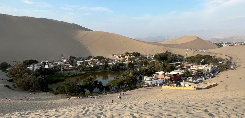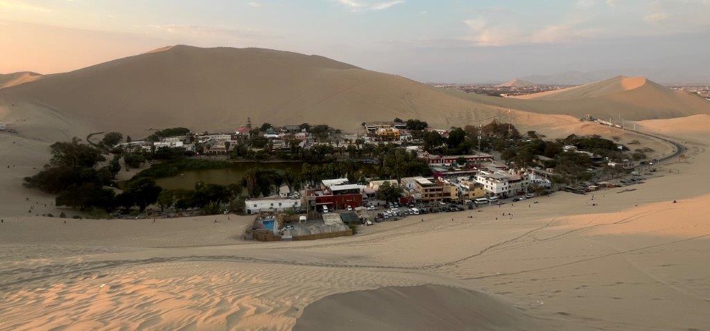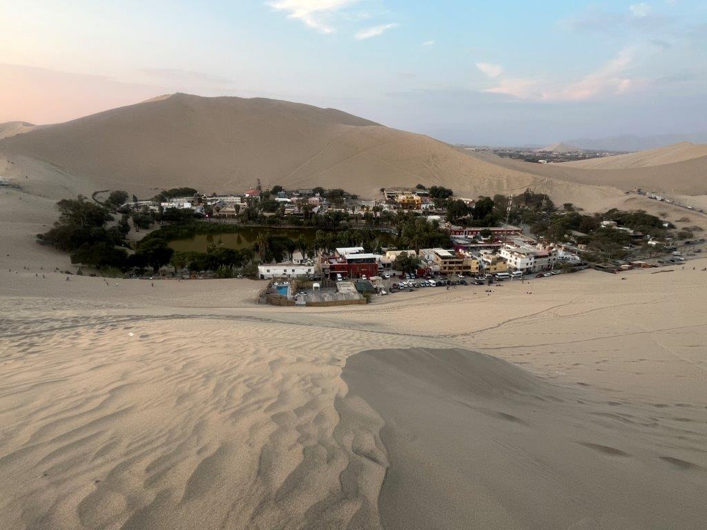 I left Paracas and headed to Huacachina which is pronounced “wah-kah-CHEE-nah” and translates to “the place of the crying woman” in Quechua, the indigenous language of the people of that area’. Local legend says it was formed by beautiful woman who wept for her lost love, and her tears formed the lagoon. You may not have heard of it but it’s highly likely that you’ve seen it in photos before. It’s been a place for tourists to visit for over a hundred years, but as the nearby city of Ica expands it is almost encroaching on it. I’m sure it brings in too much money for it to be swallowed up by the city.