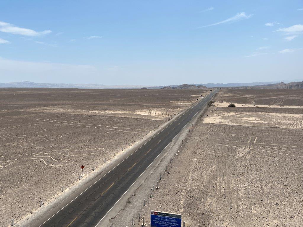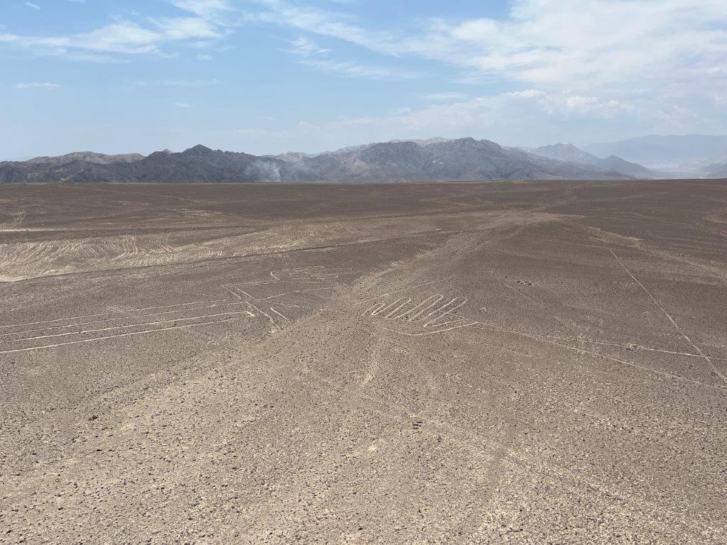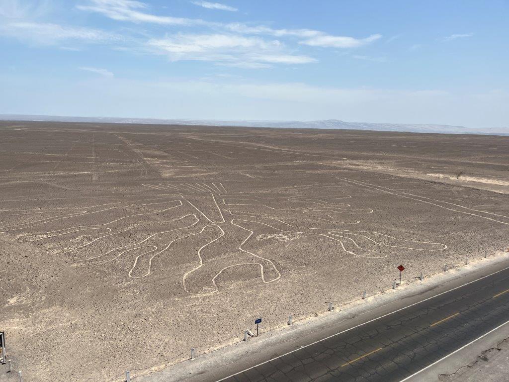 The famous Nazca lines are half an hour north of the town of Nazca and quite conveniently right on the Pan American Highway, In fact the highway cuts right through the middle of one the large geoglyphs. Maybe the highway was there first? The lines consist of various shapes, including geometric patterns, animals, and plants, with some of the most famous figures being a monkey, a hummingbird, and a spider. It’s very popular to fly over then in a light aircraft but flying didn’t appeal to me and some people I spoke to spent more time looking into their sickbag than looking at the figures.
