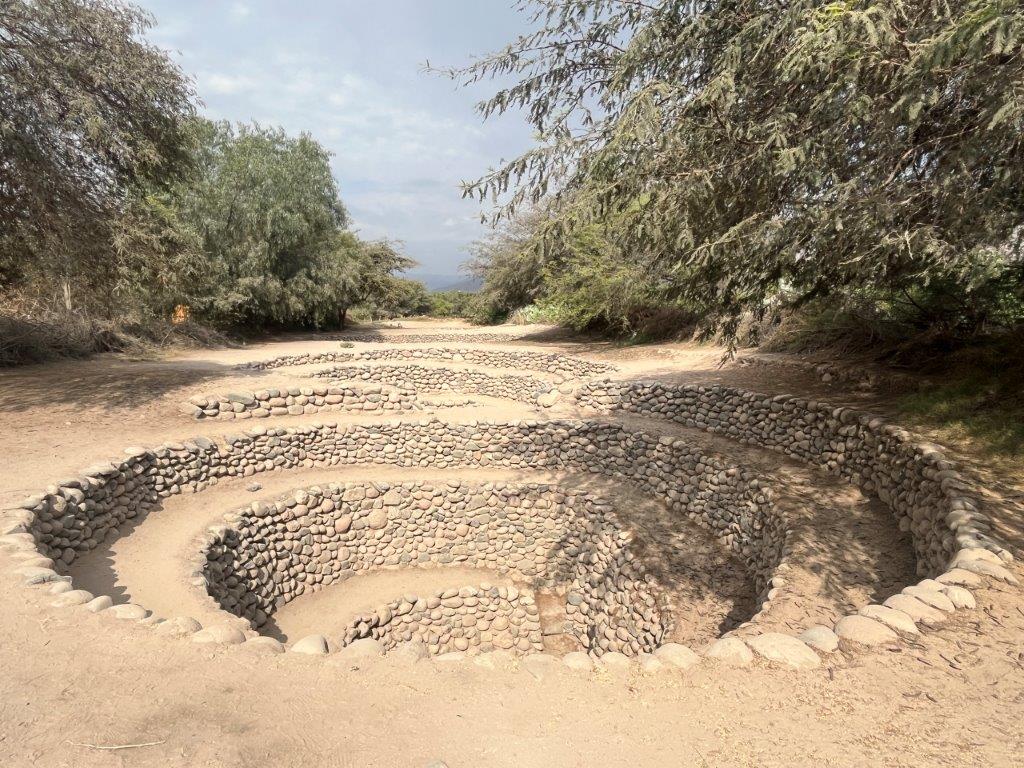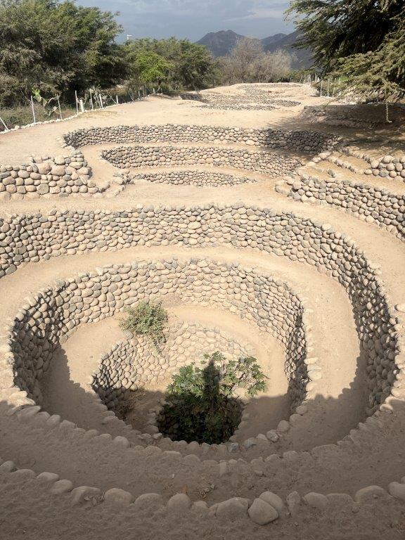 One of the local attractions are the Nazca aqueducts, which are called Puquios. They are a series of stone aqueducts that were made by the Nazca people over 2000 years ago. Many of them are still used today. I have seen them pop up on social media occasionally and think they are cool. Maybe because I’m a plumber. The set I looked at had a line of over 30 open wells that were spiral shaped and of varying depths. The region is arid desert, but they dug these spiral wells down to the water table and connected them all together and created a series of aqueducts which, combined with the natural fall of the land, allowed the water to flow out to the fields where they grew crops. They grew maize and cotton for food and textiles which helped the town prosper.