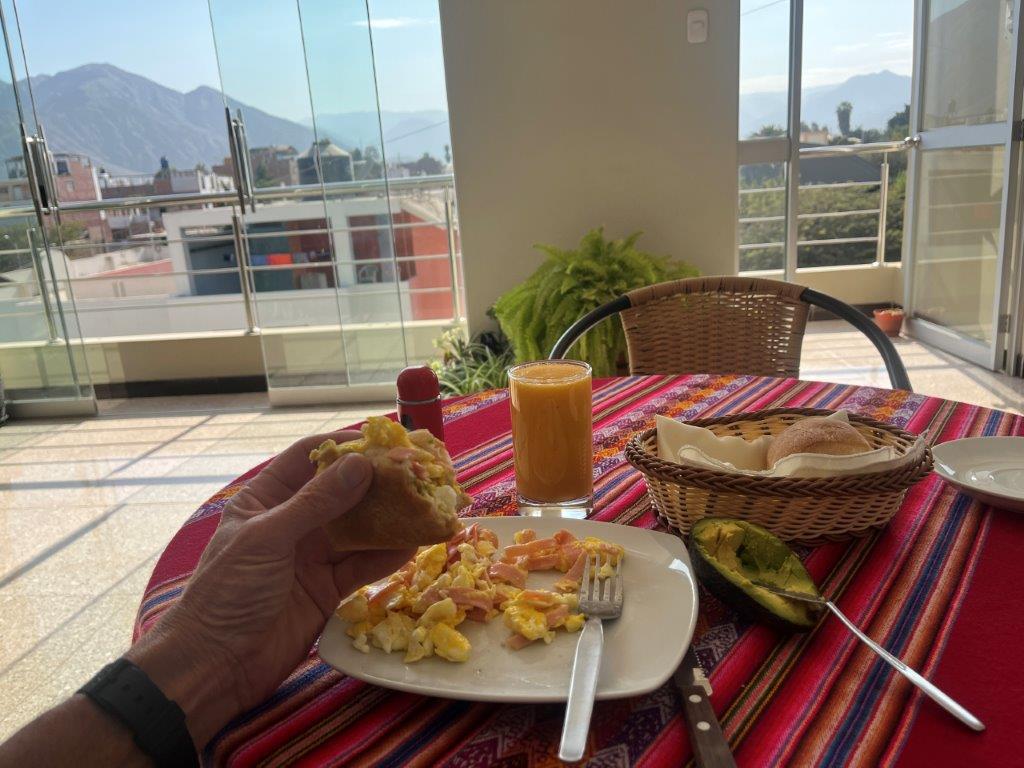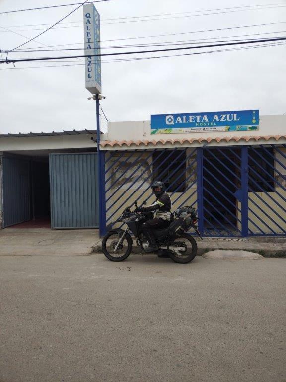 I got into town just on dark, but I had pre booked a room at the Hostel Qaleta Azul. The owner was there, lovely guy, nice place, and I was able to put the bike in his garage with his car and his bike. I dumped my stuff, walked down to the local shop with him and grabbed a couple of beers and then we returned to the hostel where he also had a friend staying and we sat around for ages, chatting about all sorts of stuff until my head nearly exploded in Spanish.