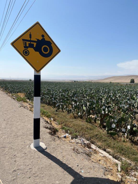 It was a quiet ride from there to Arequipa. Even the voices in my head were silent. It was a 3.5 hour ride into Peru’s second largest city. I had left the coast and was heading east and upwards. It was peaceful and spectacular with a great road and more amazing views. I stopped for an ice cream and a coke and an in-depth discussion with google maps before heading off in the complete wrong direction for 10 minutes. It did mean I got to take a photo of a tractor sign and some oddly marked cactuses that I had passed and said to myself that I should have taken a photo of that. Why is there cardboard stapled to the leaves?