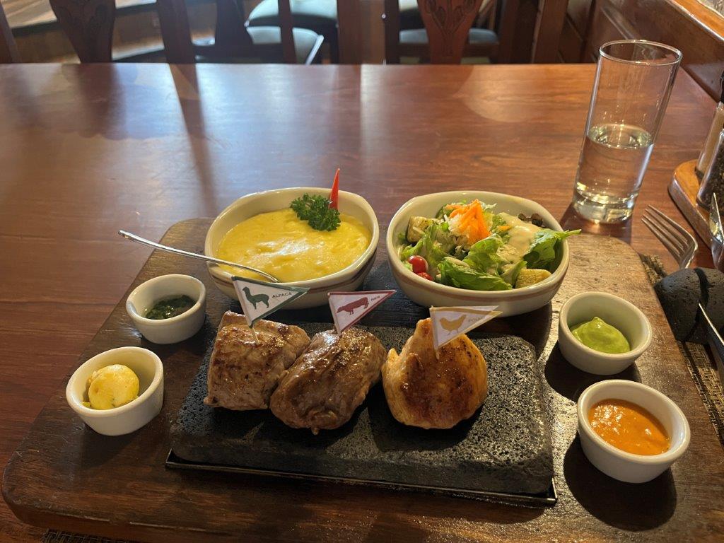 It also has nice food. I passed on the guinea pig which was on most menus but I did give the Alpaca a try. I ended up at the Zig Zag restaurant because of three unrelated things that all lead me there. It was fancy and expensive (probably just current Australian prices). I had the 3 meats on the sizzling volcanic rock option. It was great. I also found a little café that had these amazing Arabic empanadas but I could find it again in the maze of streets with lovely white buildings. I’m generally only eating twice a day if I stay somewhere with a big buffet breakfast.