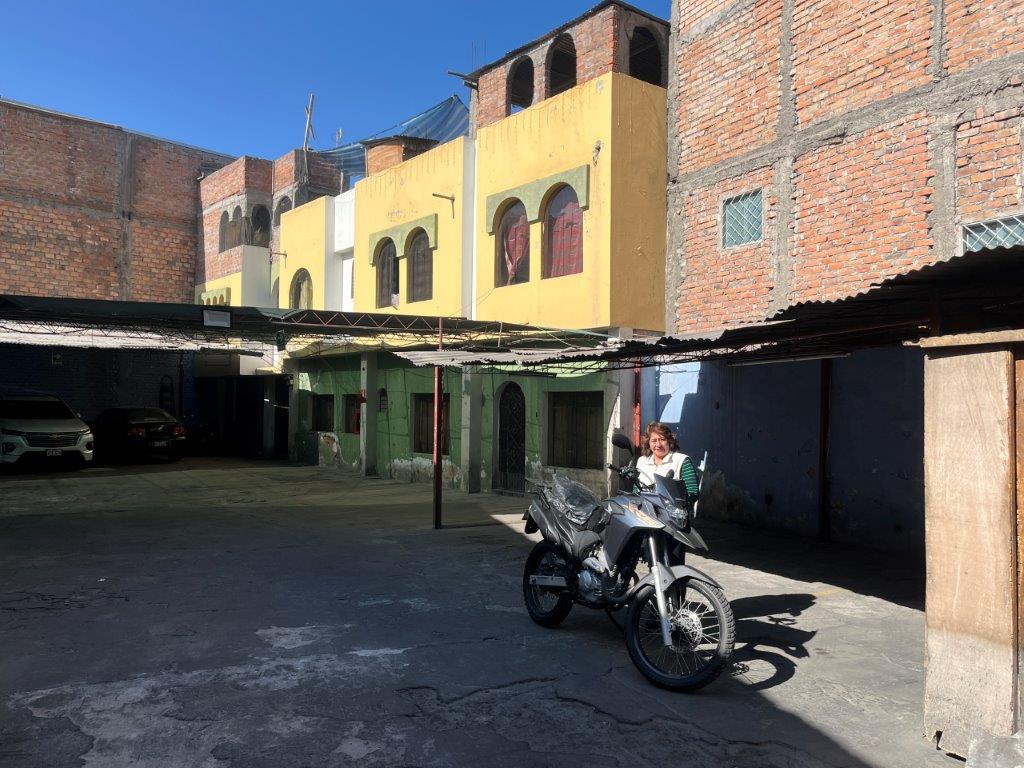 In reality that is not a huge problem in most cities as they always have parquederos, or cocheras, or playas or several other names for parking places. Some look dodgier than others and some are expensive. I managed to find a nice lady who said I could park it up the back of her parking lot near her bedroom window for $3 a night. It was securely locked and I had the cover on it. We had a great chat when I dropped it off and picked it up again.