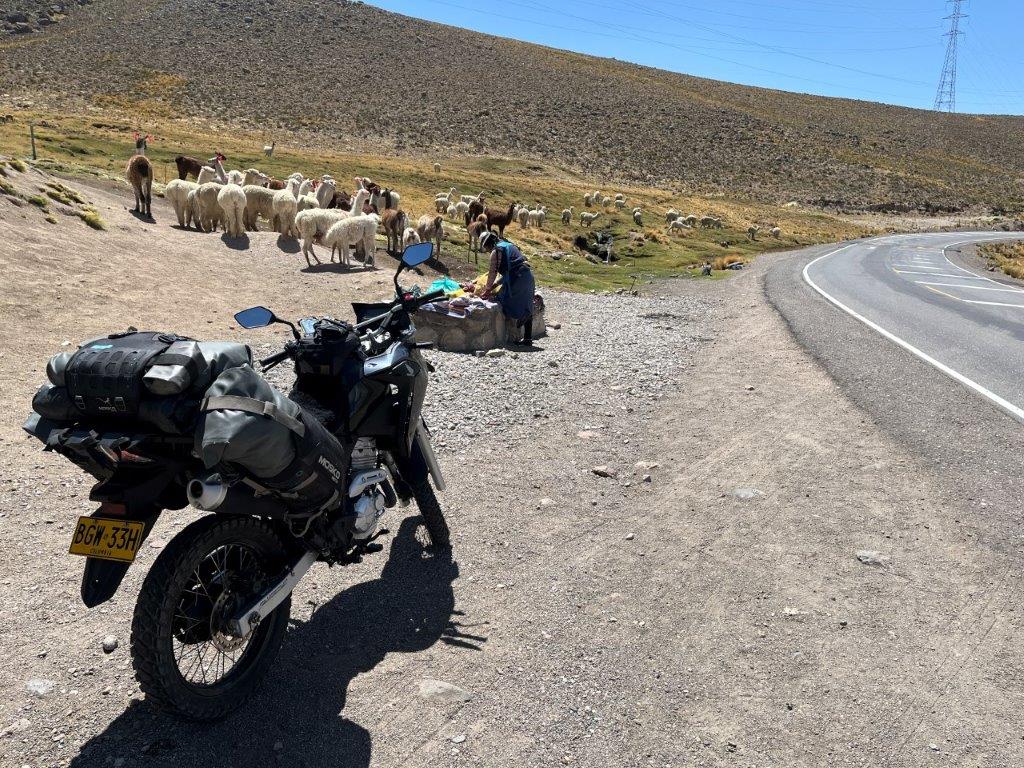 The road was great in most places, nice surface and lots of sweeping bends but it did seem to be going up all the time though and was getting colder. I then came across my first Llama sign. And then some wild llamas in some sort of national park. Maybe they weren’t actually llamas. I’m confused about llamas, alpacas, guanacos and vicunas. This is probably the place to talk about them but not the time. I need more information and so for continuity, anything that is alpaca shaped is an alpaca. Unless I accidently call it a llama.