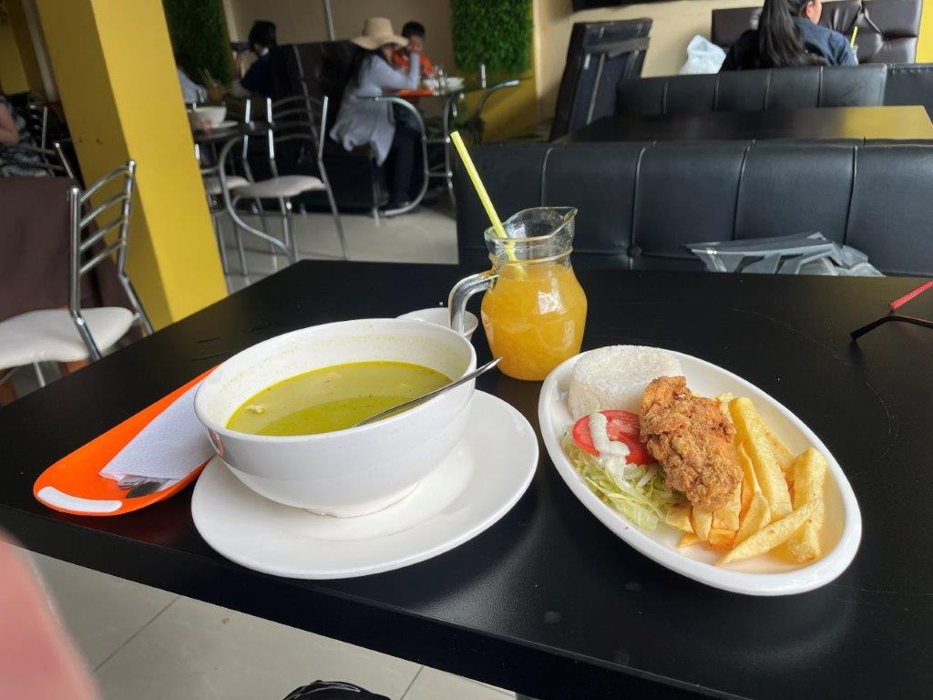 My ride hadn’t ended for the day as I needed to carry on to Cabanaconde where I had booked two nights accommodation and that was an hour away but I was still cold and the bike was thirsty. Fortunately my timing was good and I got a seat in the sun at a nice little restaurant and I ordered the almuerzo (meal of the day) and got this huge bowl of hot soup and chicken, rice and chips and a jug of limonada. the picture does it an injustice. And it only cost $5AUD. The bike also left Chivay with a full belly.