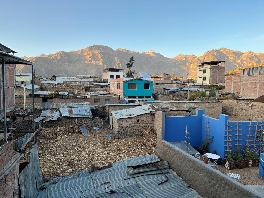 I rode into Cabanaconde and found the guesthouse. I had booked the Pachamama Home as the reviews rated it highly and said they were helpful with organising tours. It also had a nice bar restaurant attached to it. It was almost exactly that. Unfortunately when I had booked I couldn’t book two nights but managed to be able to book two single consecutive nights in different rooms. Turns out the first night was in one of a couple of rooms that they had in a building next door. It was pretty basic but had a nice place against the wall for all my worldly possessions and a reasonable view out the window. It was a shared bathroom and it had the noisiest doors I’ve had this trip. I felt much better when I realised, I wasn’t the only one banging around in the night.