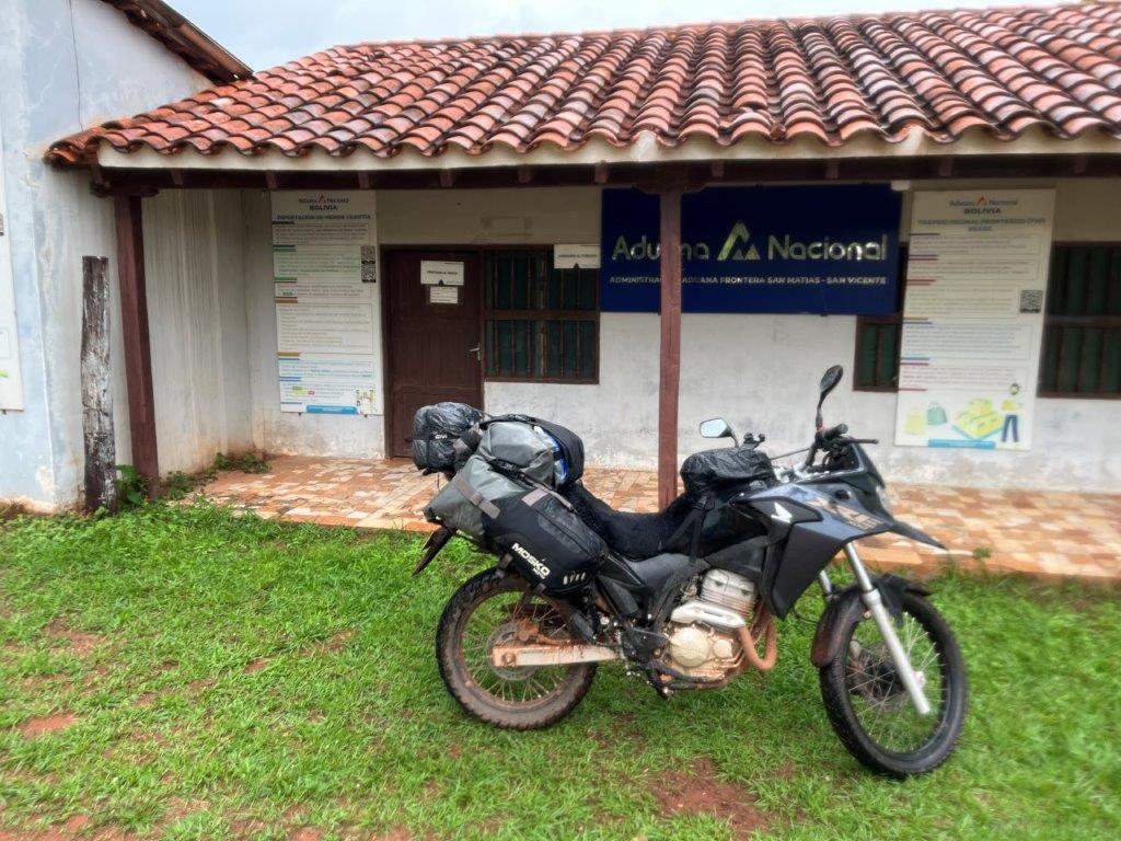 I had made San Matias by 1:00pm and so 4 hours to do 200kms on a crap road was pretty good. The town was a bit wild west looking. Even a few mennonites. I managed to find somewhere to eat and sussed out where I had to go to check out of Bolivia. First to Immigration to stamp me out and then to the Aduana at the police station to check my bike out. That all went smoothly, once I was able to find the places , which was harder than you would think. The road to the border gave me an opportunity to enjoy shit roads for just a bit longer before I reached the Brazilian border about 15 minutes later.