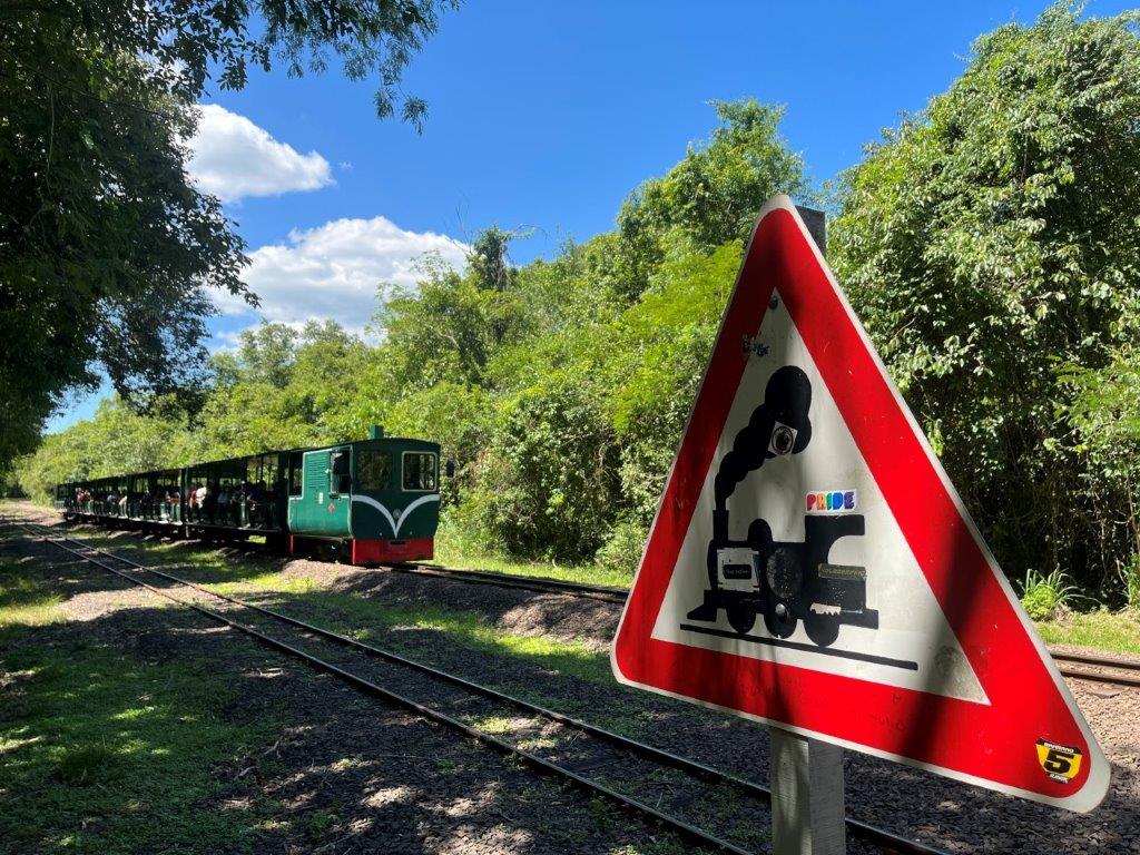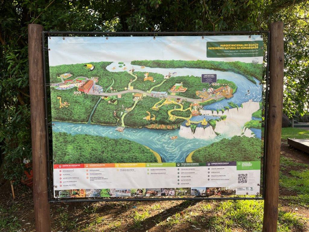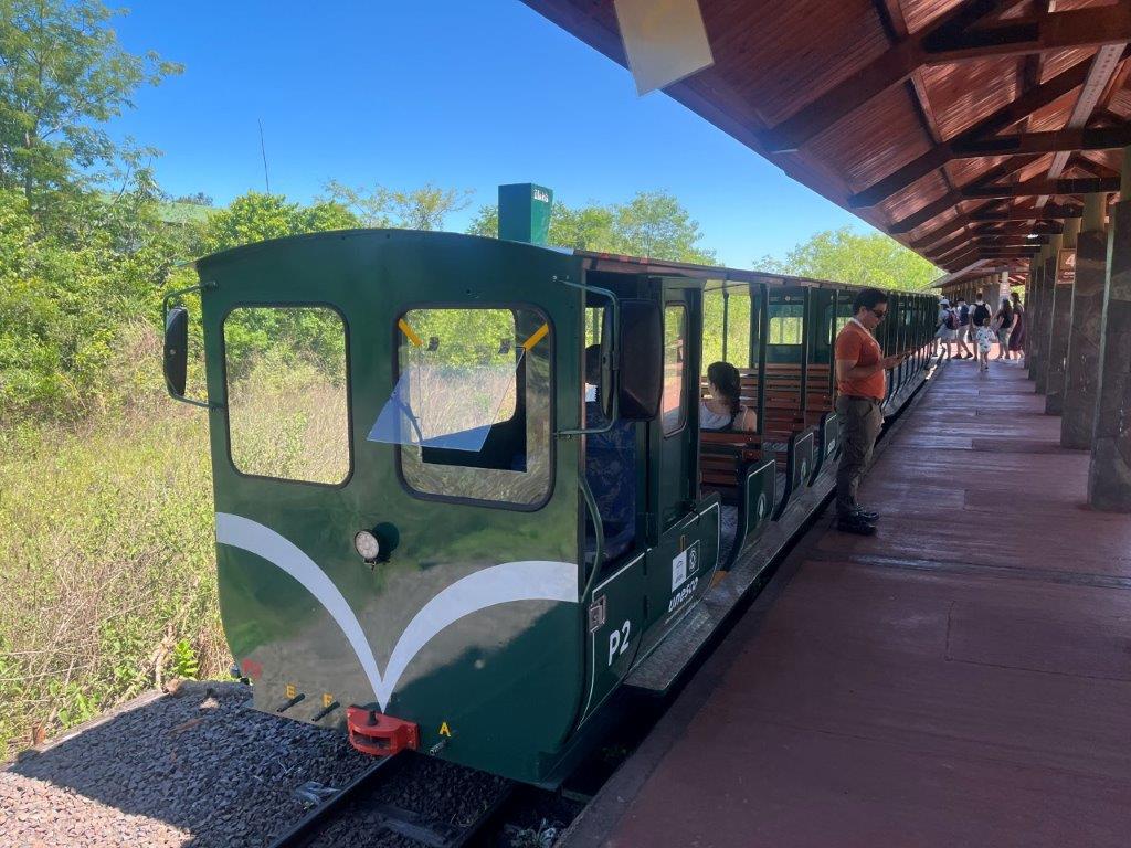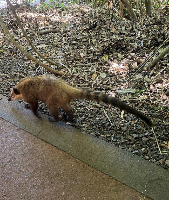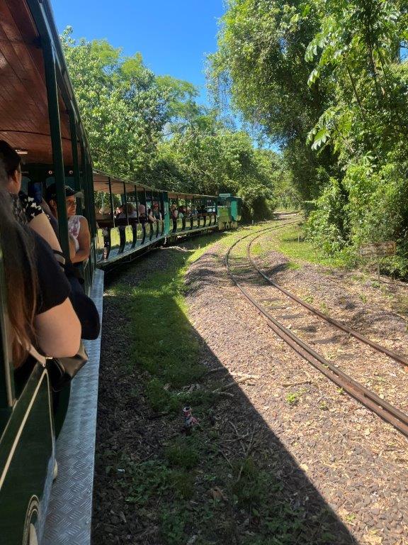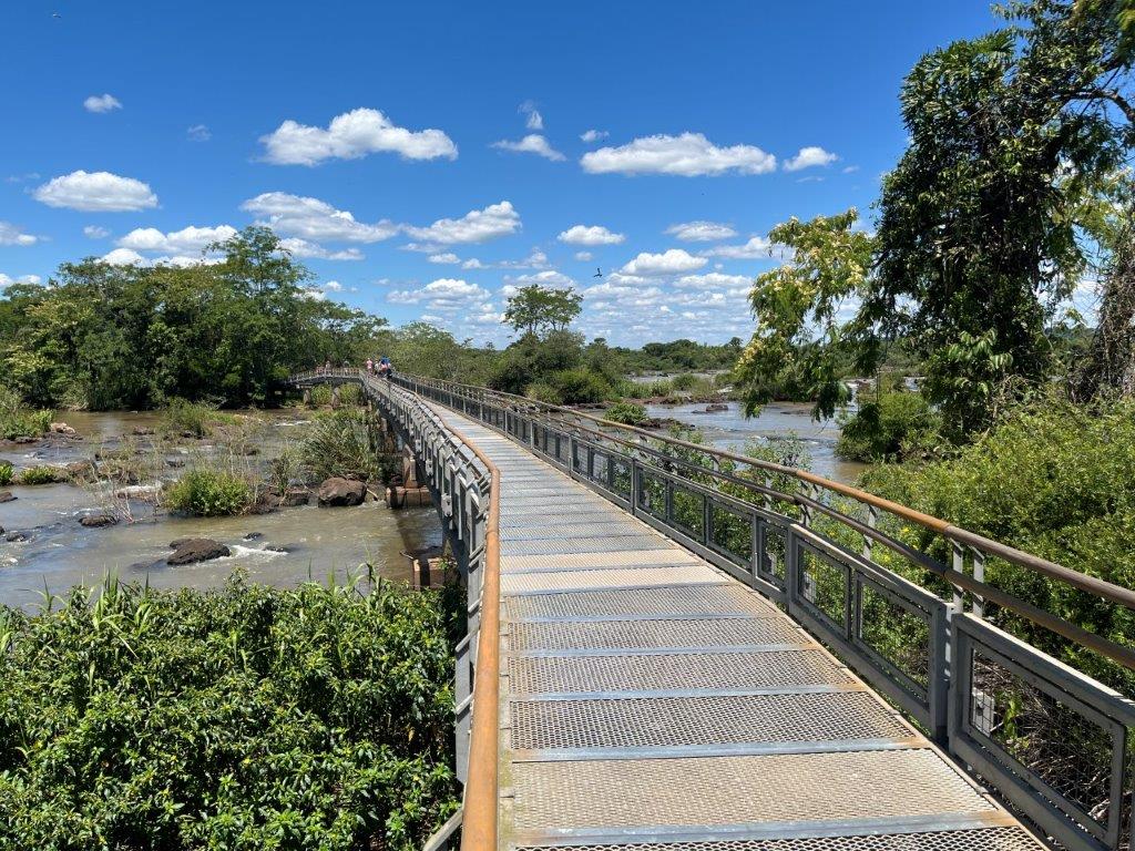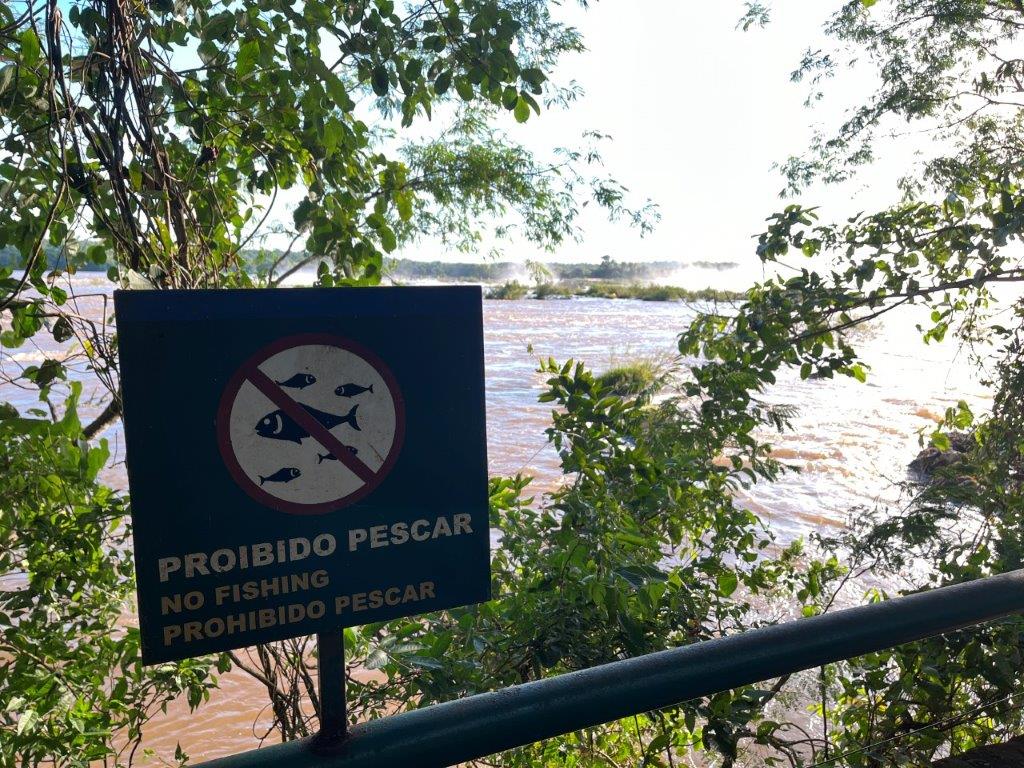 We were told the park was closing and we had to queue up to catch the elevator to the top. I noticed a guide take two people around a closed barrier and so I followed them. They were checking out another level but there was a path leading back up to the top and so I took that. About halfway up I got caught out by a ranger who said I shouldn’t be there because the park was closed but he kindly directed me to another path that led me up to the bus. Before boarding the bus, I sneaked up the river a bit for a look, but it wasn’t overly exciting. It was wide and had a no fishing sign. I then climbed aboard for my short jungle safari and back to my bike and then back to the hotel. It had been a great afternoon and made me wonder if I even needed to bother going to the Argentinian side. I did.