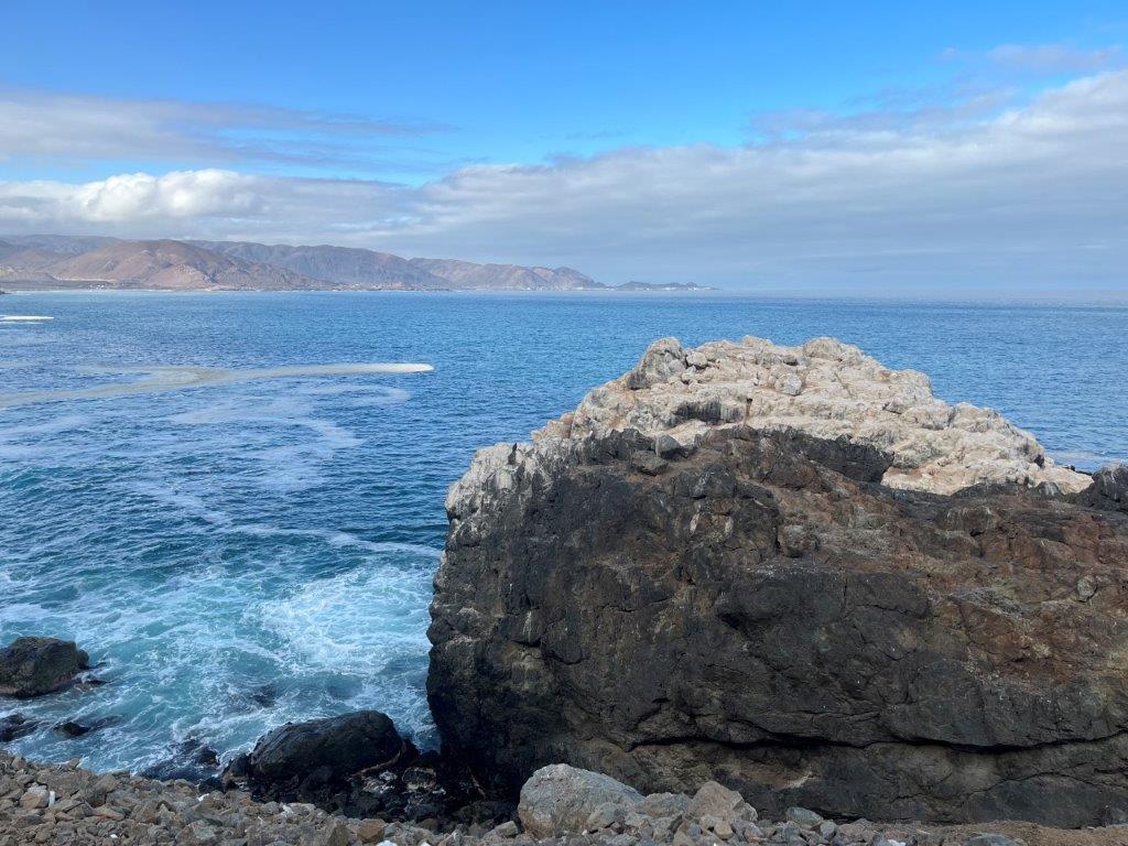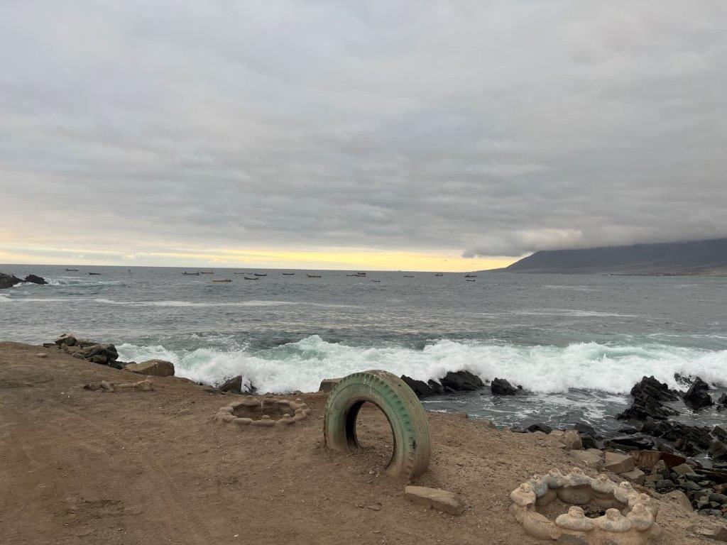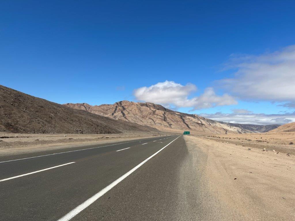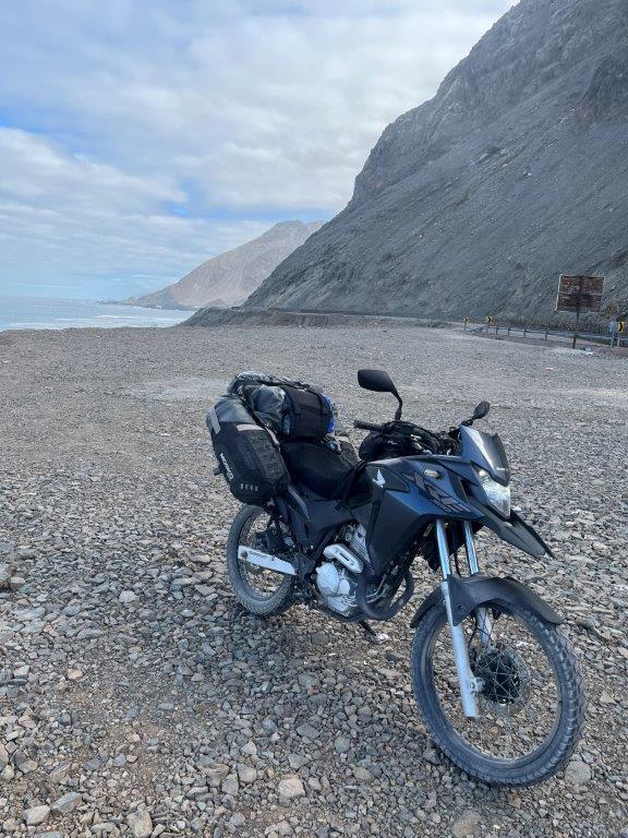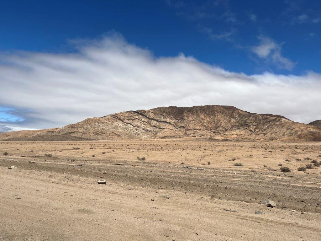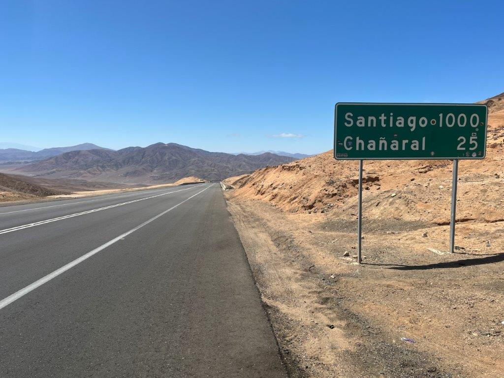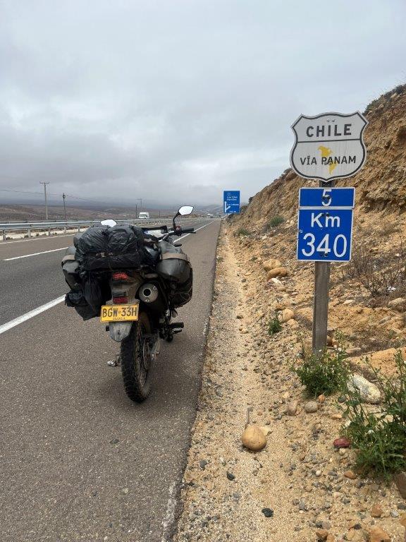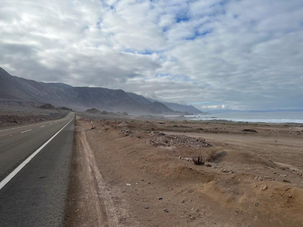 The morning I left Paposo was the last day of 2024. I planned to make it to Caldera and have a quiet New Years Eve. The winds don’t seem as strong in the morning and I had a nice ride. Stopping every 40kms or so, and getting off the bike for a walk or to take a couple of photos. When the road hugged the coast, it was pretty rocky and wild with the occasional small beach and then where it went inland a bit it was back to barren desert. But I thought it was lovely. I think I like deserts. And also you would go high up into the clouds and then back down through them. I was still a bit sore, but mentally I was much better and was excited to see the Santiago 1000kms sign appear.