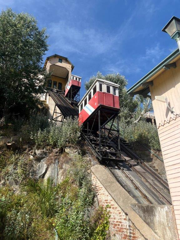 I wandered down around the waterfront and saw and smelt some elephant seals. They were hanging out on an old concrete structure in the water. I stayed for a while and watched them climb up on to it. And knock each other off it. I also went for a ride on the towns famous old funiculars. They used to have 30 of them but now only 15 operate. They were built in the late 1800’s to make the higher areas of the city more accessible. The have a carriage at the top and another at the bottom and work together to counterbalance each other with a big cable. 15 cents for the one minute ride up or down. A nice little tourist thing to do but also used by the locals as a way to climb the hills.