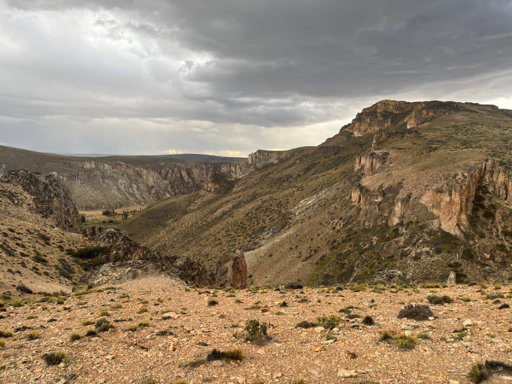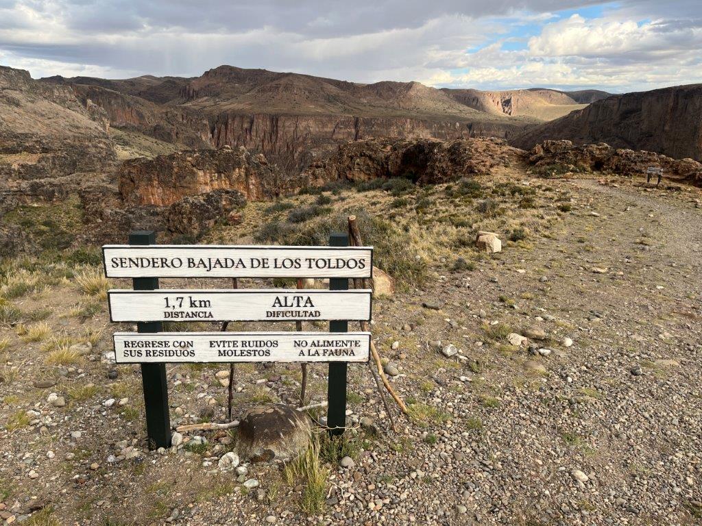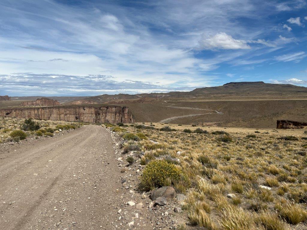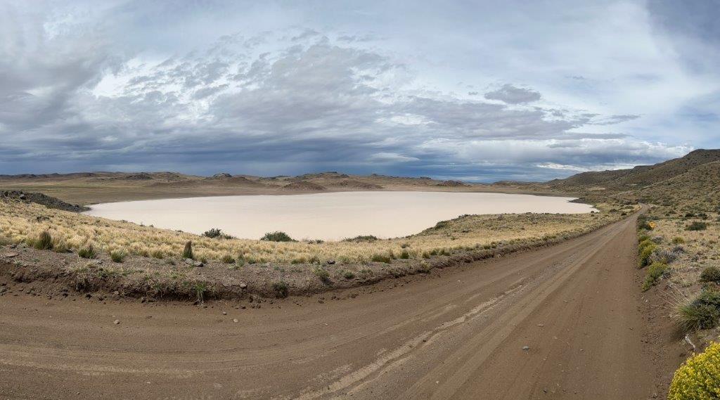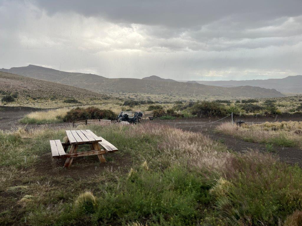 So I left Chile Chico about 8:30 and rode the short distance to the border. Checking out took about 5 minutes and then it was about 6kms of no mans land with a couple of signs about half way. About another 15mins to check in to Argentina and it was starting to spit rain so I put on my wet weather gear. I rode to the first town called Los Antiguos and found a café/restaurant that was open that time of the morning. I asked if I could just have a couple of eggs on toast and a coke. What I should have asked was how much does a couple of eggs on toast and a coke cost. The eggs were scrambled and overcooked, the toast was a couple of yesterdays bread rolls. The coke was fine. A nice lady there who spoke some English. When I went to pay it was $27 which I thought was pretty expensive. It was only later when I checked my account that I saw it was $US and was actually $42AUD. A great lesson on modern Argentinean prices.