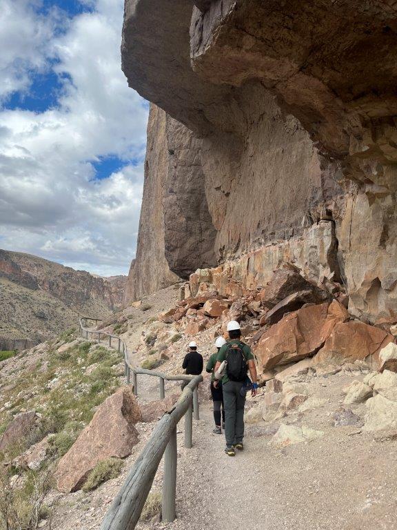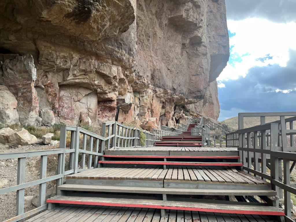Finally, the lady said that I could pay in Chilean pesos, which fortunately I still had enough of in my wallet. Crap exchange rate but I was in. I put on my silly white construction hat and headed off with about 20 others and a guide. You can only do the tour with a guide. I was the only native English speaker and a couple of Europeans who spoke some English. It was good for my Spanish as he talked first in Spanish and then repeated it in English. It was about a kilometre of boardwalk along the side of a mountain face. In reality there is only one cave and you can’t go in it but it’s not deep and you can see inside and the only artwork is at the entrance anyway.