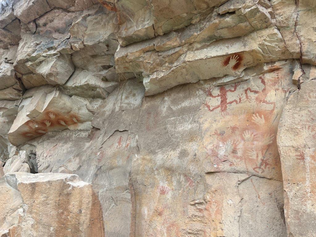 I rode east to Perito Moreno which only took an hour and fuelled up. My plan was to head as far south as I could that day but to stop off at a place called Cueva de las Manos (the cave of hands) on the way. Well. That plan didn’t quite work. I met two Americans about my age on big bikes at the petrol station. They were planning to do a similar thing but showed me a map which said that the route I had chosen was a gravel road and so they were taking an alternative route to the north east and then going south. That would add another 300kms to my trip and mess up my timing. So I decided to just go to the cave of hands which was an hour south and then come back again and do the same route as them tomorrow. My overall plan was to stay on that side of the continent and follow the sealed roads all the way down to the bottom and the town of Ushuaia. It was still 1700 kilometres but would be safer for my sciatica and give it more time to heal.