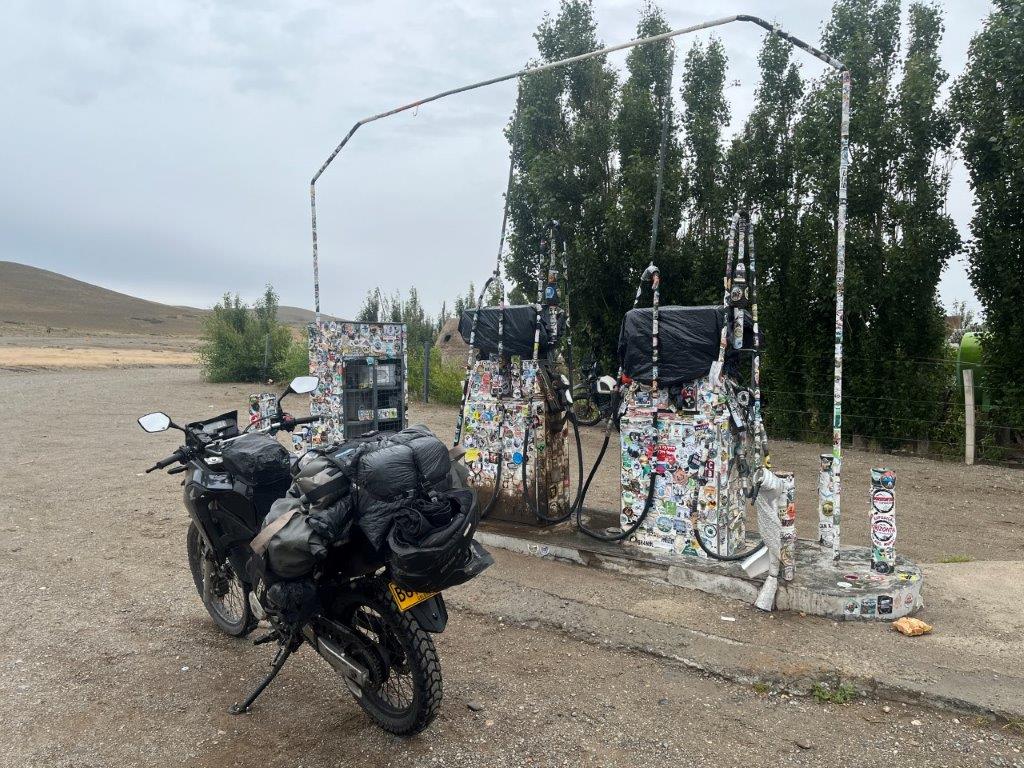 I was back travelling on Ruta 40 which is another of the famous South American highways. My destination was Gobernador Gregores. My goal was to be able to pronounce it by the time I got there. Only 365kms but a good distance for a late start. Pretty flat and boring and a bit of wind which knocked my fuel economy around and I was a bit panicked when I arrived at a well known petrol station and the pumps were all sealed off and looking derelict. A couple of Chilean bikers said I could ride with them as they had enough fuel and could help me out if I ran out. Fortunately a young guy appeared after a while and removed the garbage bags from the pumps and we were able to fill up.
