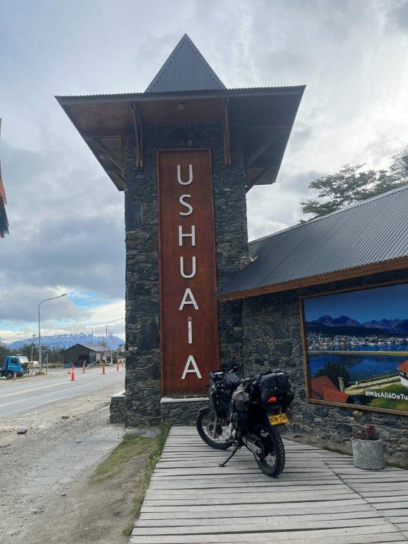 You come into town along the water and so you can see the city from several kilometres out. Finally, you come around the bend and you see the two big Ushuaia entry posts. I’d seen them hundreds of times but now it was for real. I wondered if I would get emotional, but I think I felt more a sense of relief that I had actually made it. There was a time when I thought I wouldn’t.