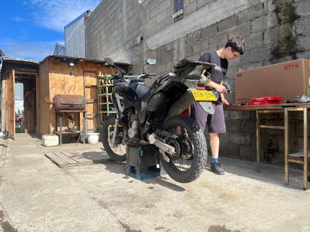 That worked fine. I also asked him to adjust the chain which in retrospect was probably a financially bad idea. But I was able to watch/help and gained some great knowledge about my bike. We were able to go back to the Honda shop after hours as the boss was still there. I paid $240AUD for a chain and new sprockets which seemed okay. But it turned out they weren’t exactly the same and while they would have worked if I was stuck, it would have chewed out the rubber chain guide eventually. And he would have to drill bigger holes in the new sprocket to fit the bolts. I got him to put the old ones back on and just renew the chain. I can source some exact replacements when I get to Brazil which is where the bike is made. He charged me $200AUD which was probably cheaper than Honda. Another lesson on how expensive Argentina has become. And the bike got a really nice wash which was well deserved and needed.