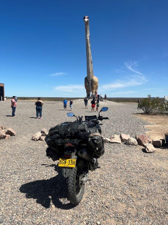 I know at the end of the 73kms there are several fuel stations. The Ruta 288 definitely doesn’t have any until it hits the Ruta 3. I know I can do at least 300kms on a full tank. And its only 240kms. So I was very relieved when the 5 litres almost filled my tank. So about 8:30 I informed the cop of my route and then passed through the road closed sign and headed east. The first 20kms had patches of loose gravel which aren’t very nice but with the wind behind me I had control of the bike, so it was okay. I sat on about 30kph. It was going to be a long day. Then the road and probably my skills and confidence picked up a little and I was doing 50kph. And by the end, the road seemed much better, and I was constantly backing off from going over 70kph. I was pleasantly surprised when the bitumen started about 10kms earlier than I had expected and then happy to get to the junction where I met the road that I had been on before. It ended up only taking me about 3 hours to do the gravel and I only passed one car in each direction. I did see a lot of guanacos(llamas) and rheas (emu looking birds). Camera shy.