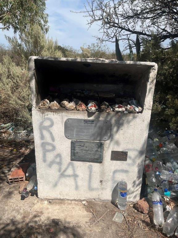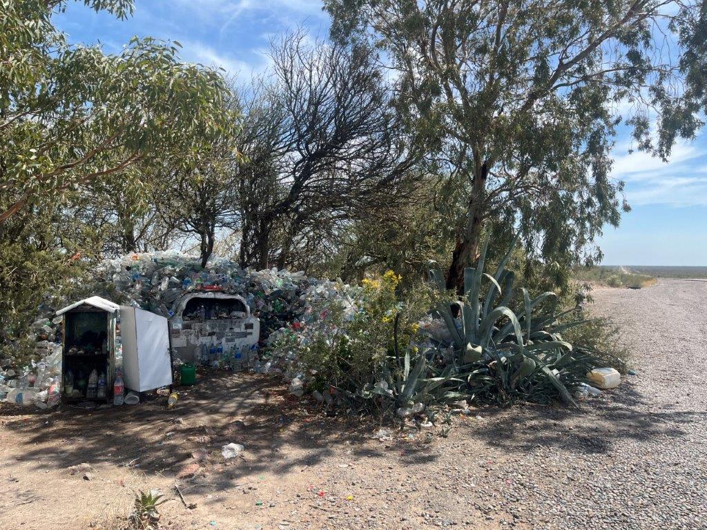 Before I left town I had to find somewhere to get my oil changed. My engine is oil cooled and needs to be changed every 3000kms and it was due. It was a bit of stuffing around and not cheap, but I found a place and greased my chain as well and I was off. On the outskirts of town there was a dinosaur? More long flat roads and wind. And I often see these memorials that are surrounded in plastic bottles. No idea why. I’m sure it’s not just rubbish as they wouldn’t do that to the memorials.
