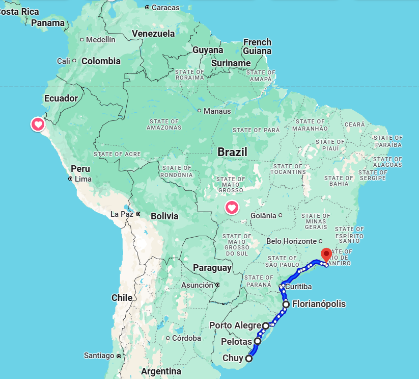 Next morning I had to ride to Rio. I had spotted a nice little café across the street so once I’d packed up, I popped over there and had a delicious fresh juice and probably the nicest croissant that I’ve ever had. It was sad to leave such a nice, cheap apartment with so many good food options around, but I had booked 2 nights in Rio and much to my disappointment and bad timing, Carnival was about to start. So, I was leaving Brazil’s largest and most dangerous city to ride to Rio which is the second largest city and full of people and traffic diversions for its biggest event of the year. A full day’s ride and a lot of city roads. What could go wrong?