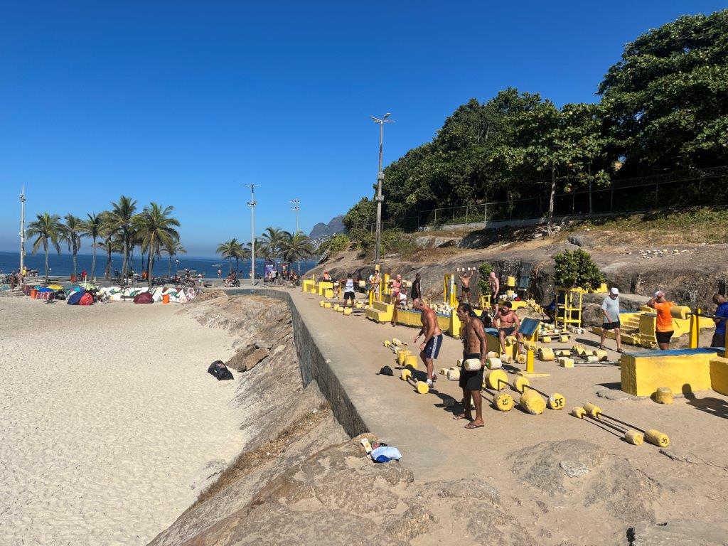 Next I had to visit Copacabana and Ipanema beaches which were only a couple of kilometres away from my hotel and why I chose that spot. It was a long day and a lot of steps but I managed to walk both beaches and they also lived up to expectations. I actually made an error and walked the length of Copacabana, thinking it was Ipanema. After realising my mistake I had to walk the beach again in the opposite direction and the around point and onto Ipanema. Very similar beaches. I had THE song, ear worming in my head, as I had played it before I left the hotel to remind me of it. despite the nice day it was pretty cold so only my feet got to swim at both beaches. And there was a pretty cool free beachside gym with weights made from old pipe and concrete.