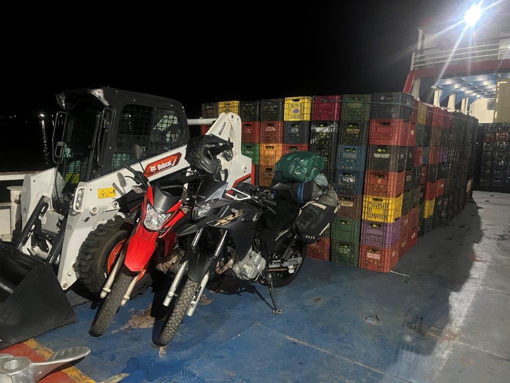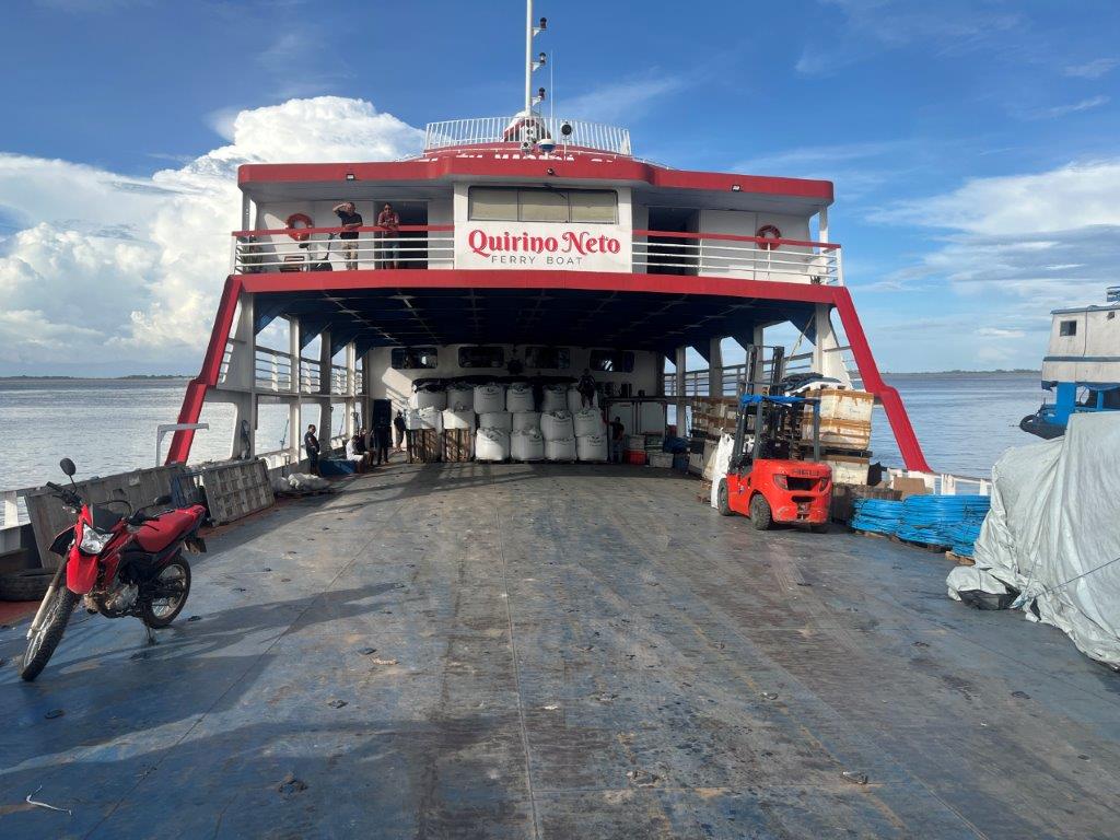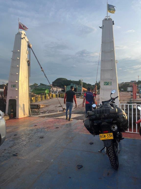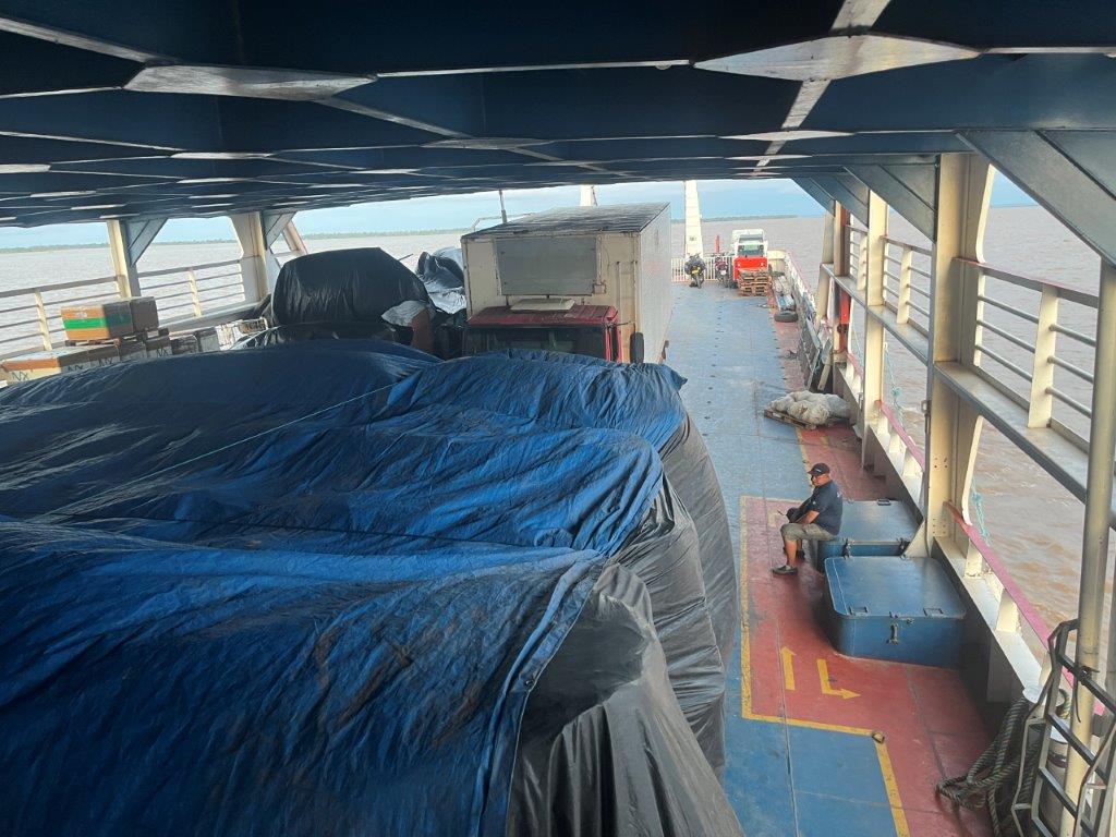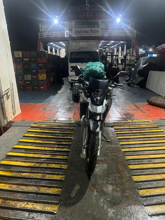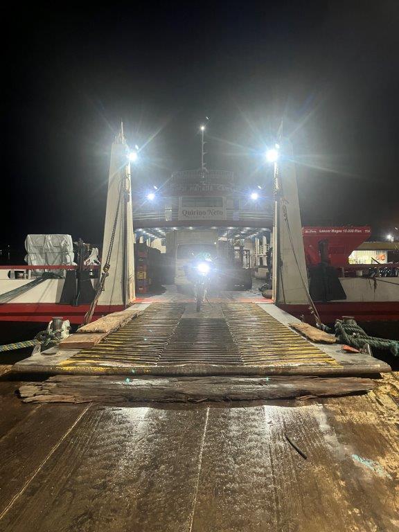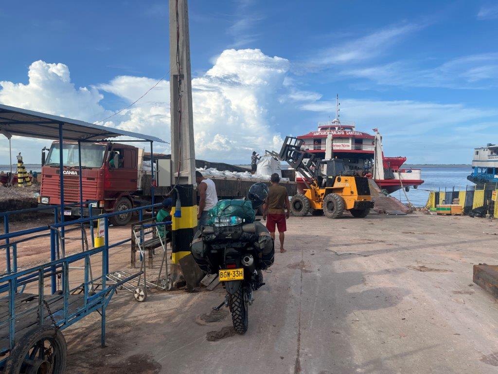 About 4:00am on the second night the engines died down and I saw lights and so knew we were in a place with electricity. We had arrived in Macapa about 4 hours early. I think that it is probably a common thing. Some people just stayed in their hammocks. Others slowly packed up. I went down onto the main deck and the guys were starting to offload the fish crates. All manually onto carts with big wheels. Then a truck arrived and started taking limes as I was packing up my bike.