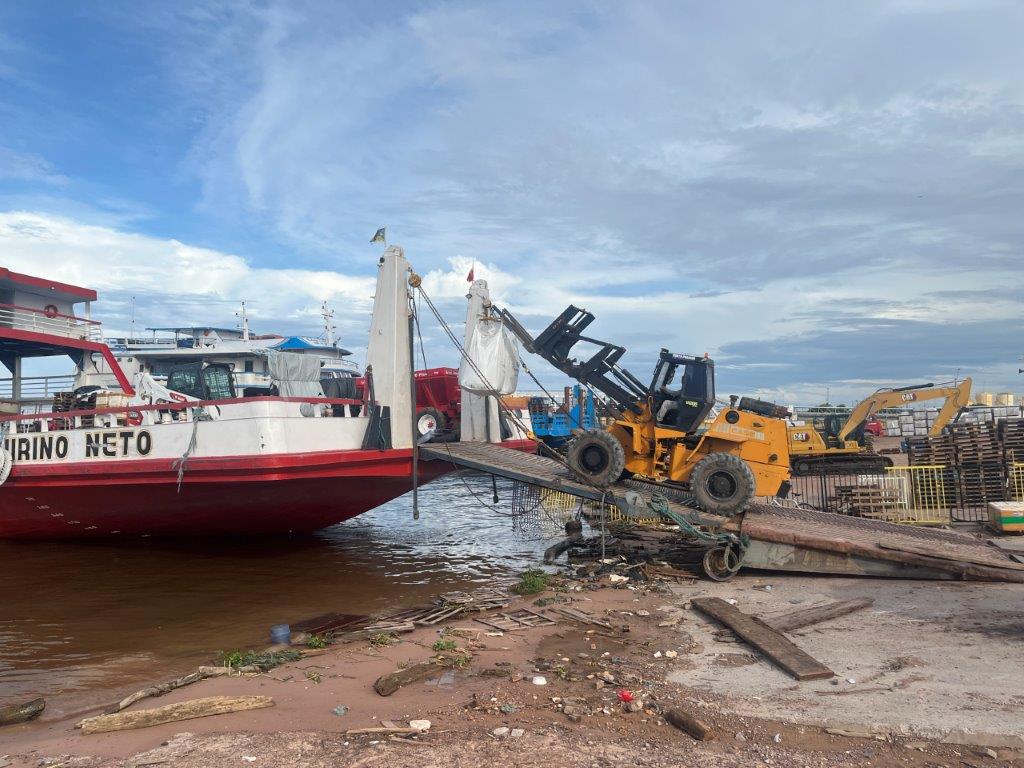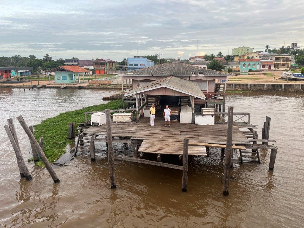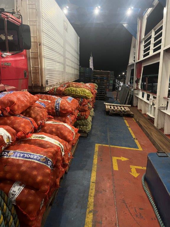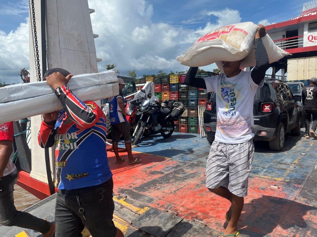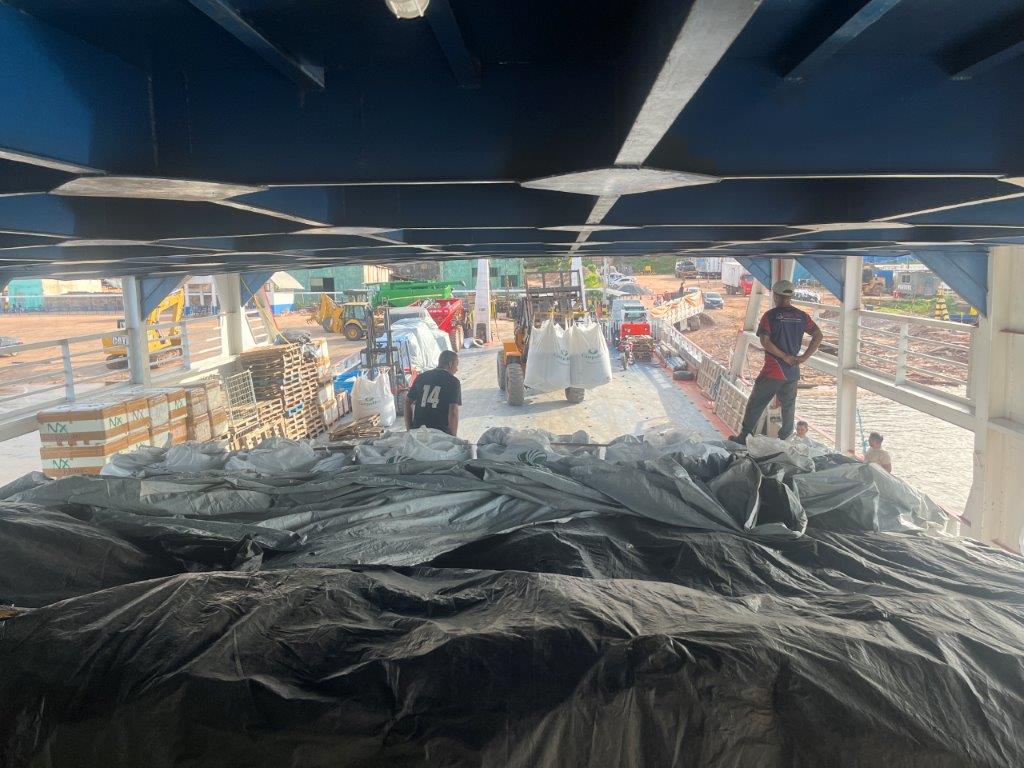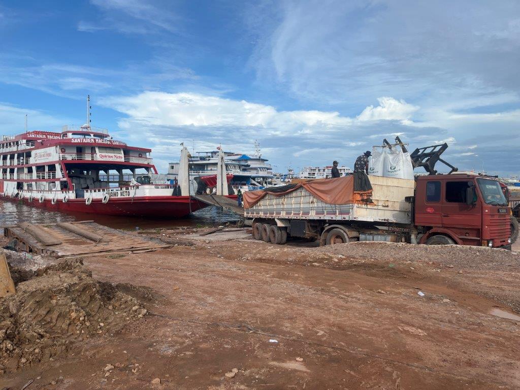About 4:00am on the second night the engines died down and I saw lights and so knew we were in a place with electricity. We had arrived in Macapa about 4 hours early. I think that it is probably a common thing. Some people just stayed in their hammocks. Others slowly packed up. I went down onto the main deck and the guys were starting to offload the fish crates. All manually onto carts with big wheels. Then a truck arrived and started taking limes as I was packing up my bike.