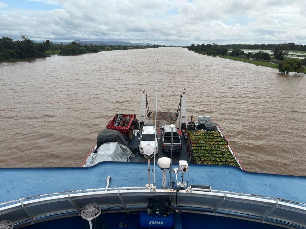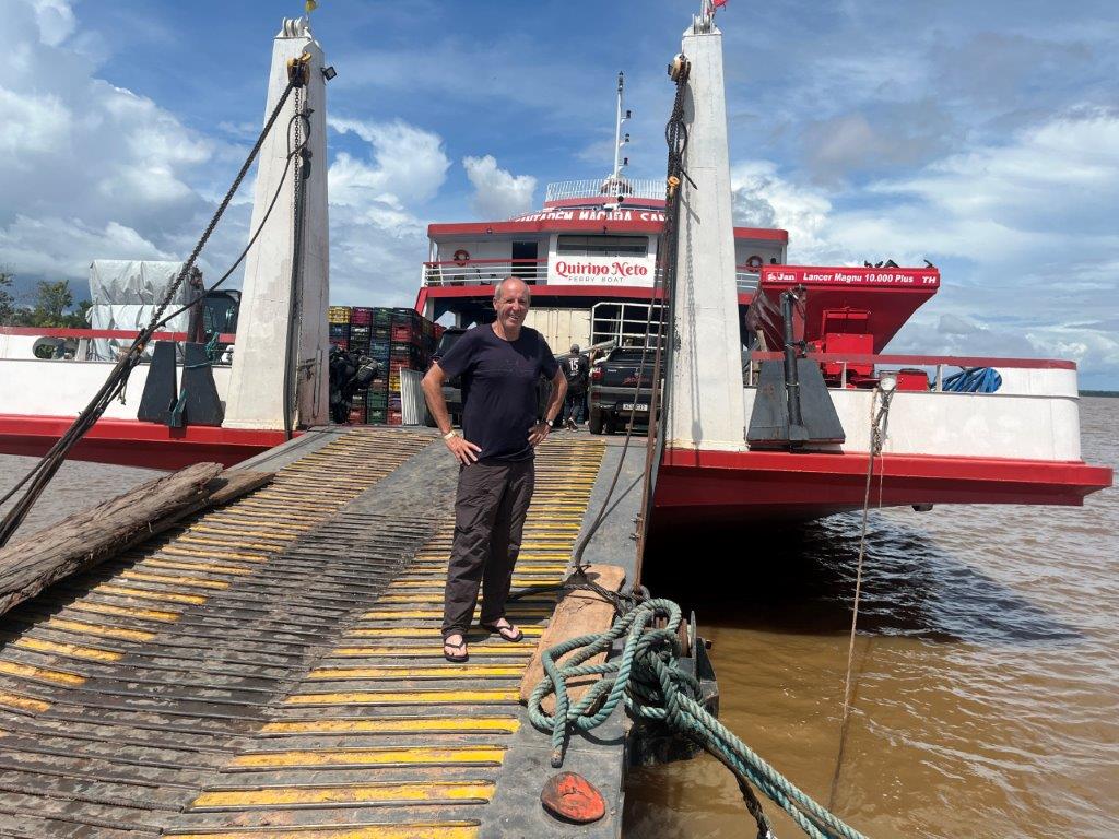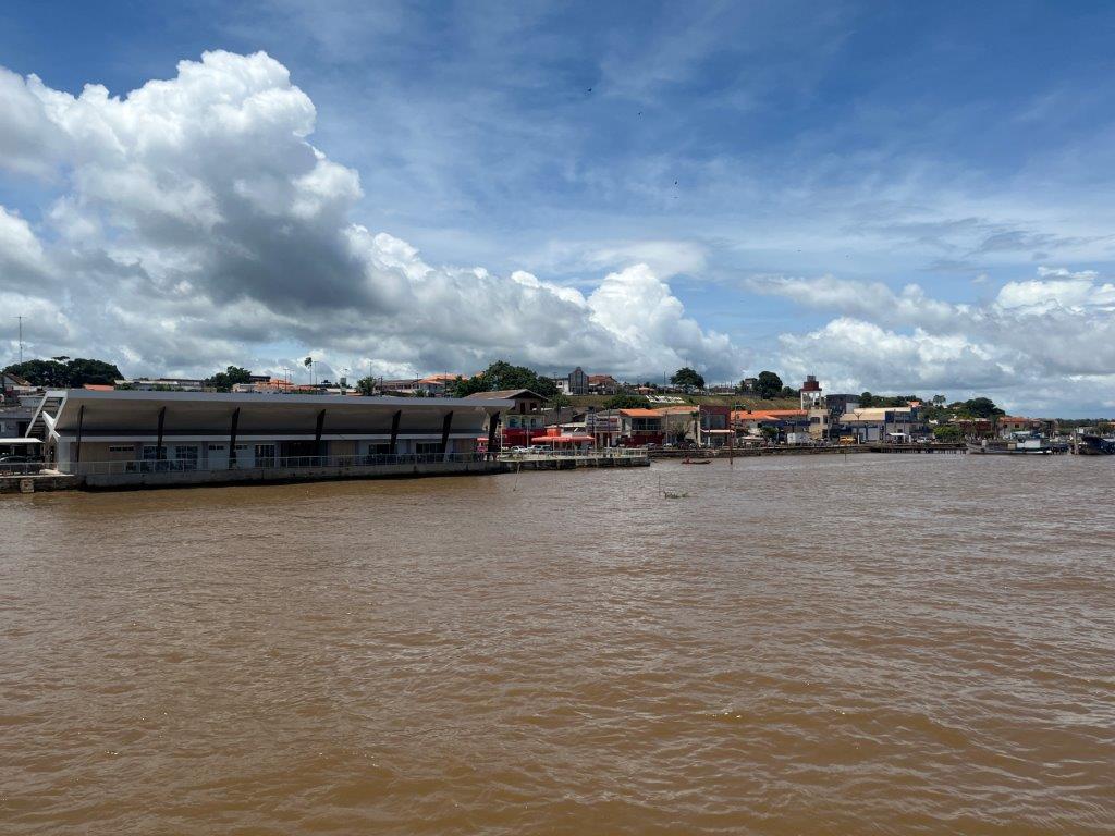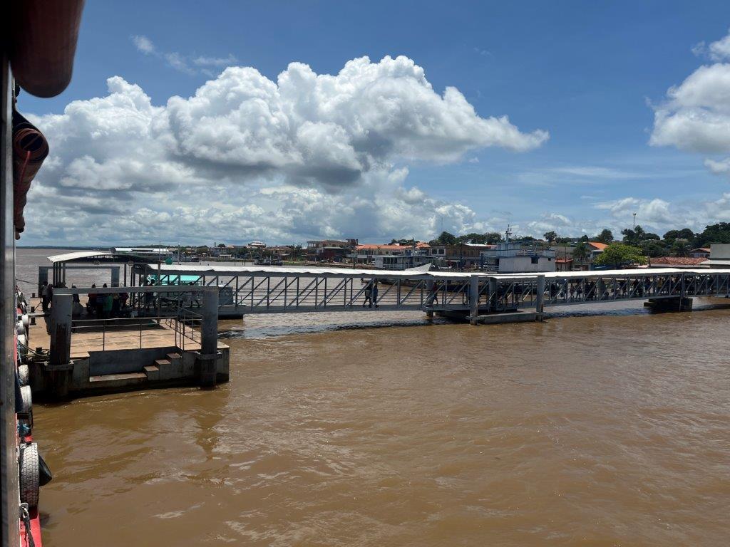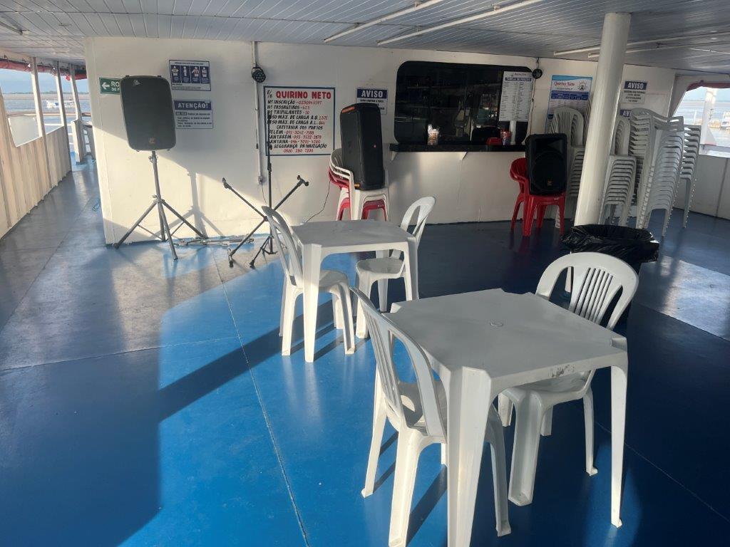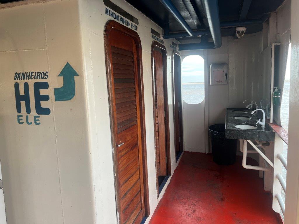 Then the loader helped take some of the weight off the ferry’s loading ramp as they manually hauled the chains to raise it, and we were off. 15 minutes behind schedule. I’d call it on time. Just on sunset. I grabbed a beer from the bar and watched Santarem light up as the darkness arrived. I also watched as we crossed the line in the water from the Tapajos River into the Amazon River. Seamless. Not even a bump. It was pretty cool to be on a ferry, on the Amazon and sailing off into the darkness.