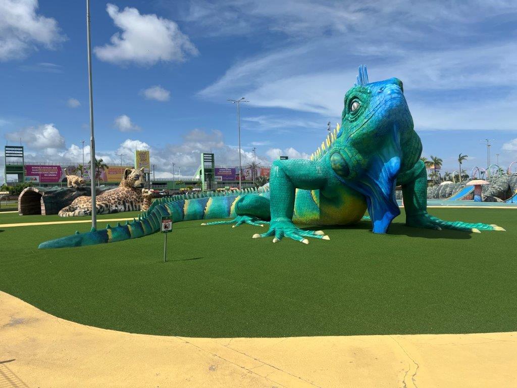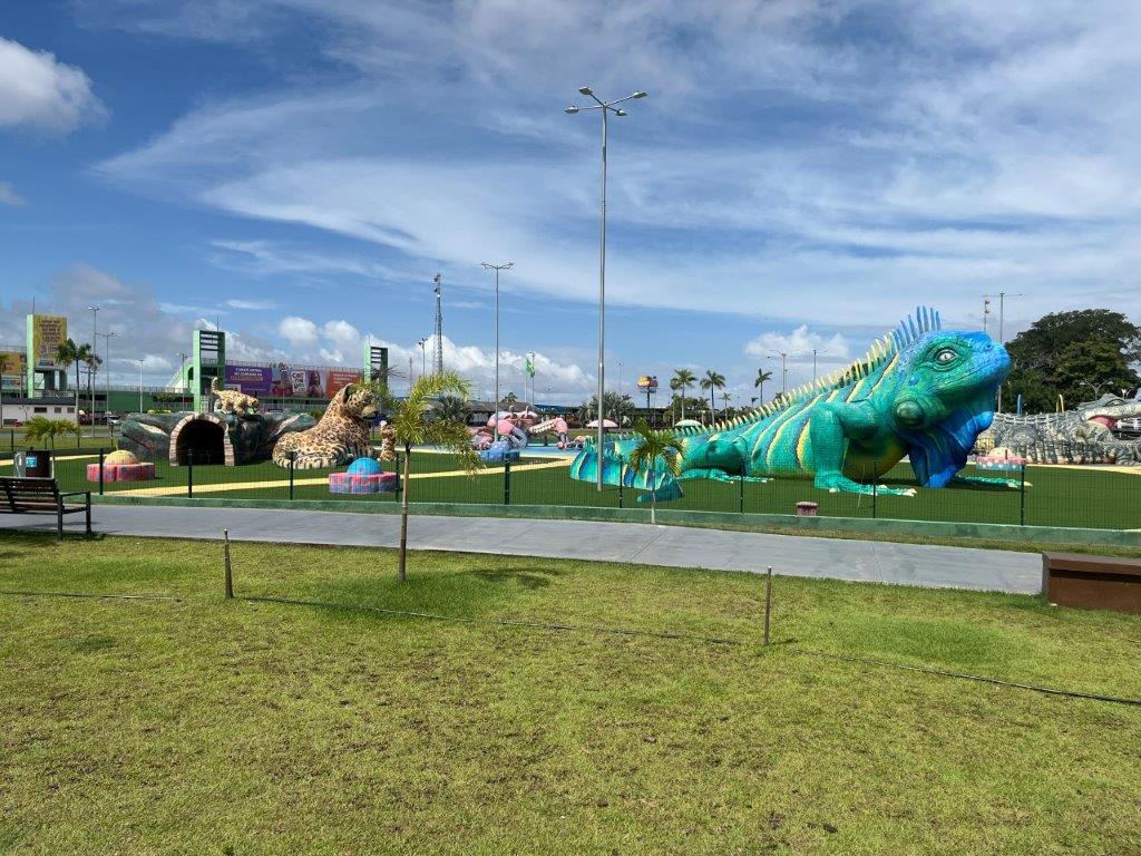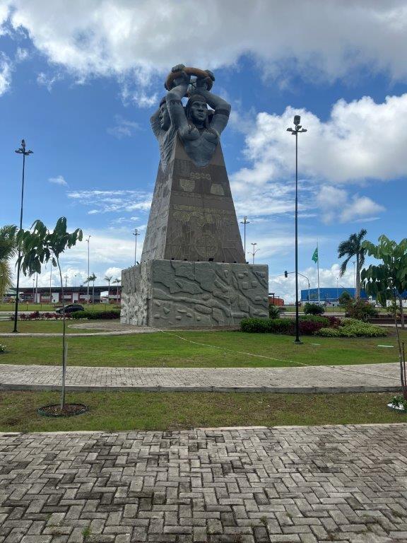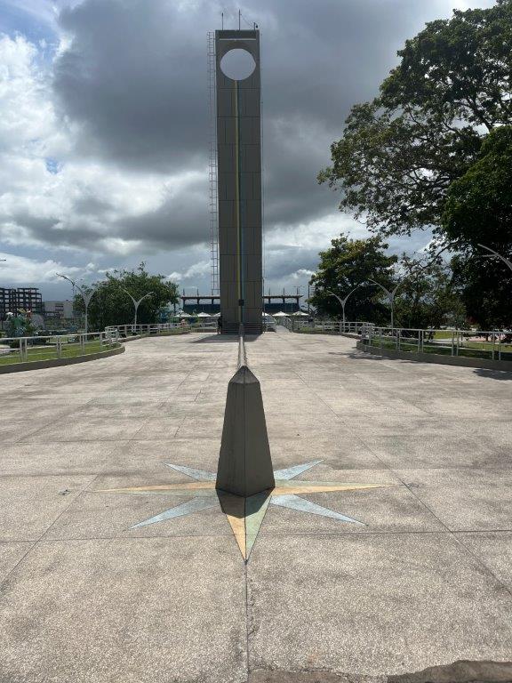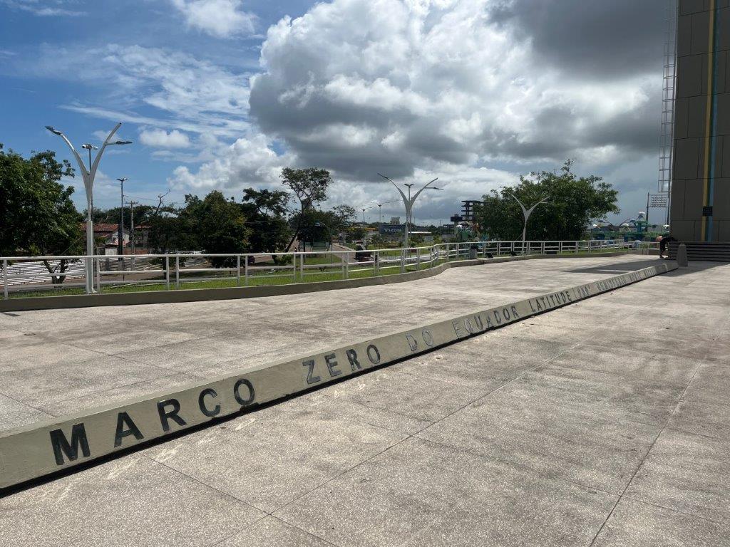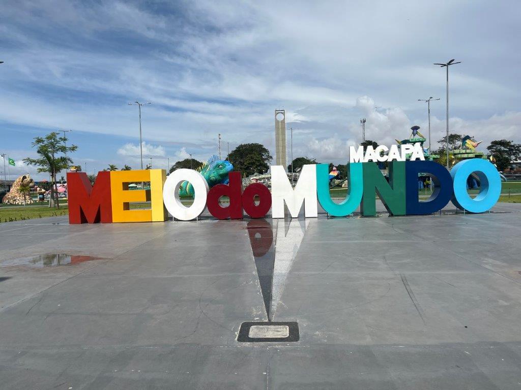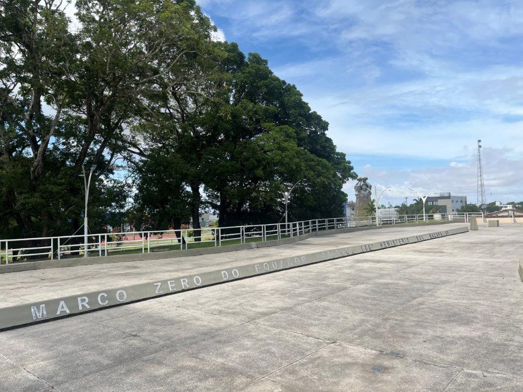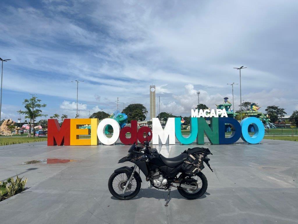 The town of Macapa straddles the equator and it was about 5kms to get there so I rode the bike. It’s actually quite weird, but fun, to ride an unloaded bike and without all the safety gear. I feel naughty. Also riding up onto the footpath and parking in front of the sign and the park with all the oversized animals.